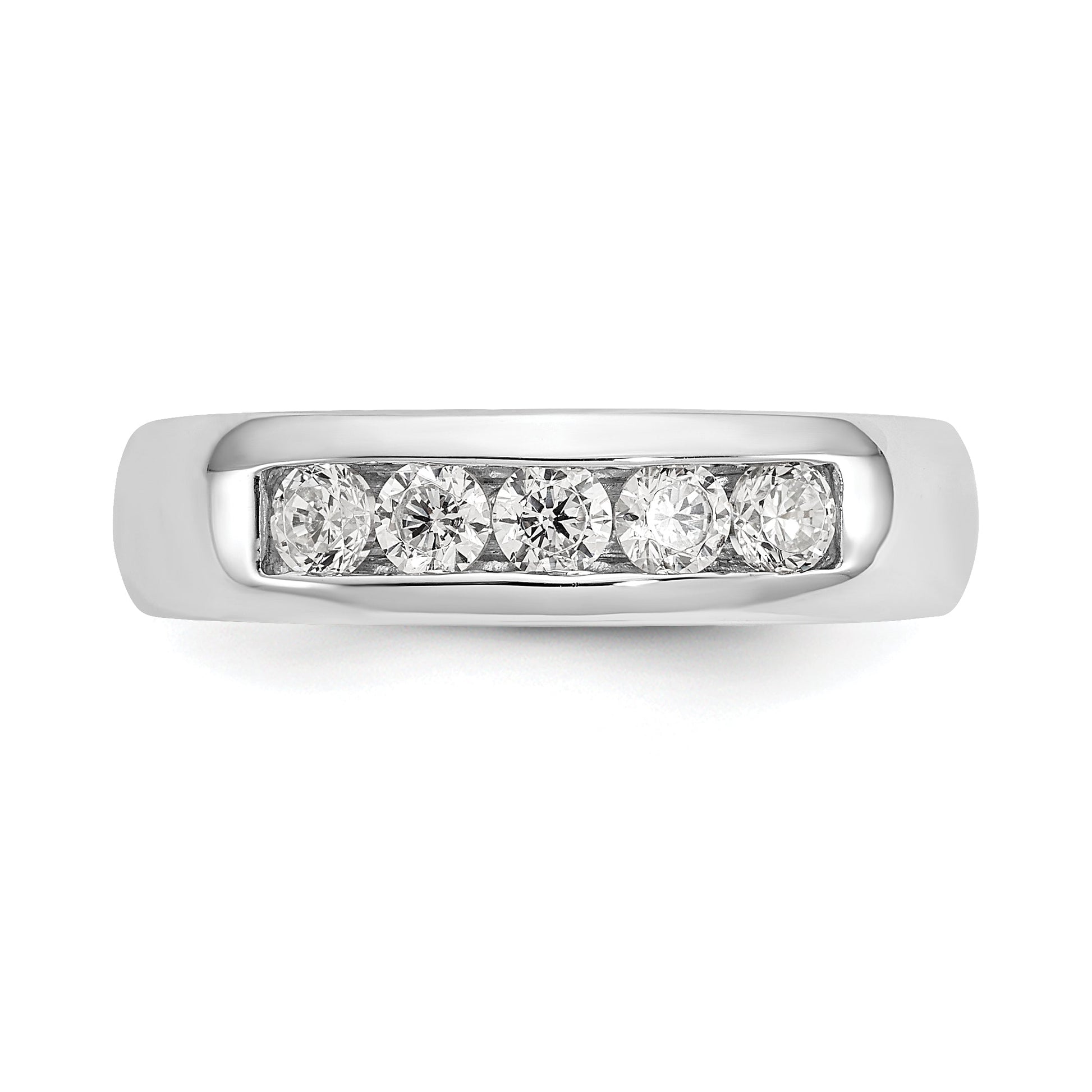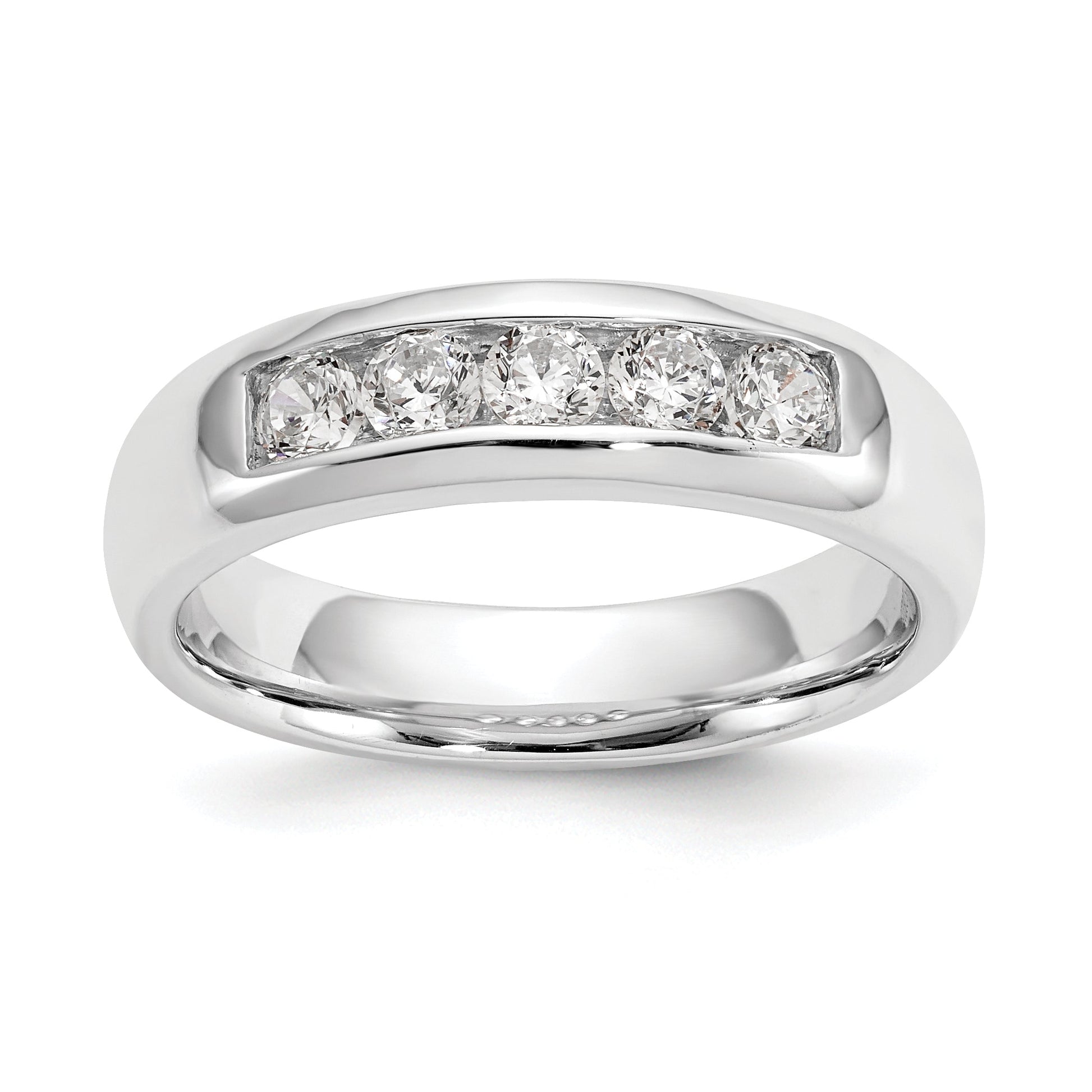 Your satisfaction is important to us, which is why we offer a 30-day money-back guarantee and complimentary giftbox with your purchase. And with a band width of 5.4 to 4.3 mm (tapered) and a thickness of less than 2mm, this ring is both comfortable and stylish. So why wait? Invest in a timeless and classic piece of jewelry today with the 0.50ct. CZ Solid Real 14K White Gold 5-Stone Channel Wedding Band Ring.