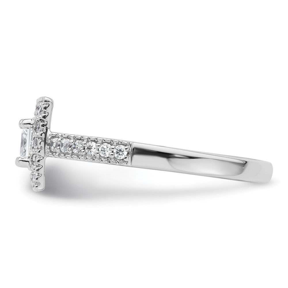 This engagement ring boasts a band width of 2.4 mm and a head height of 3.9 mm. The ring fits any finger size between six and eight, and can be adjusted in increments of 0.25. It is designed with a solid head type, and the stone creation method for the cubic zirconia is synthetic. The ring is a perfect complement to any outfit and adds a touch of sophistication and elegance to any occasion.