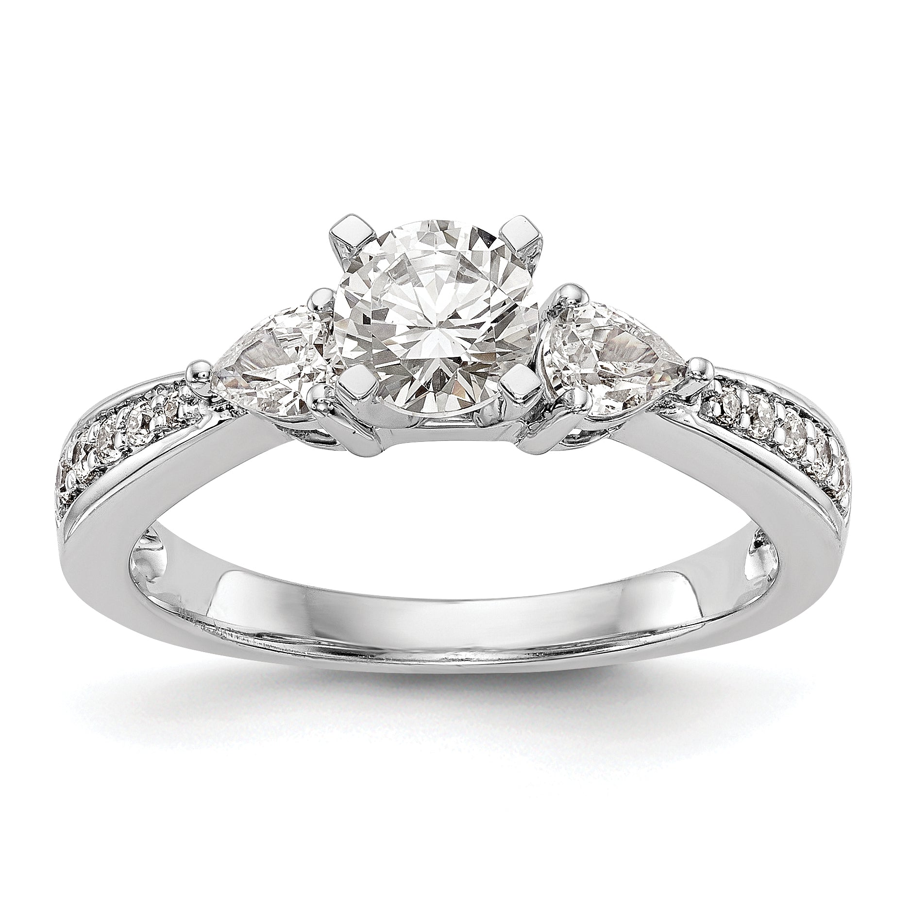 Upgrade your jewelry collection with this magnificent '0.51ct. CZ Solid Real 14K White Gold 3-Stone Peg Set Engagement Ring'.