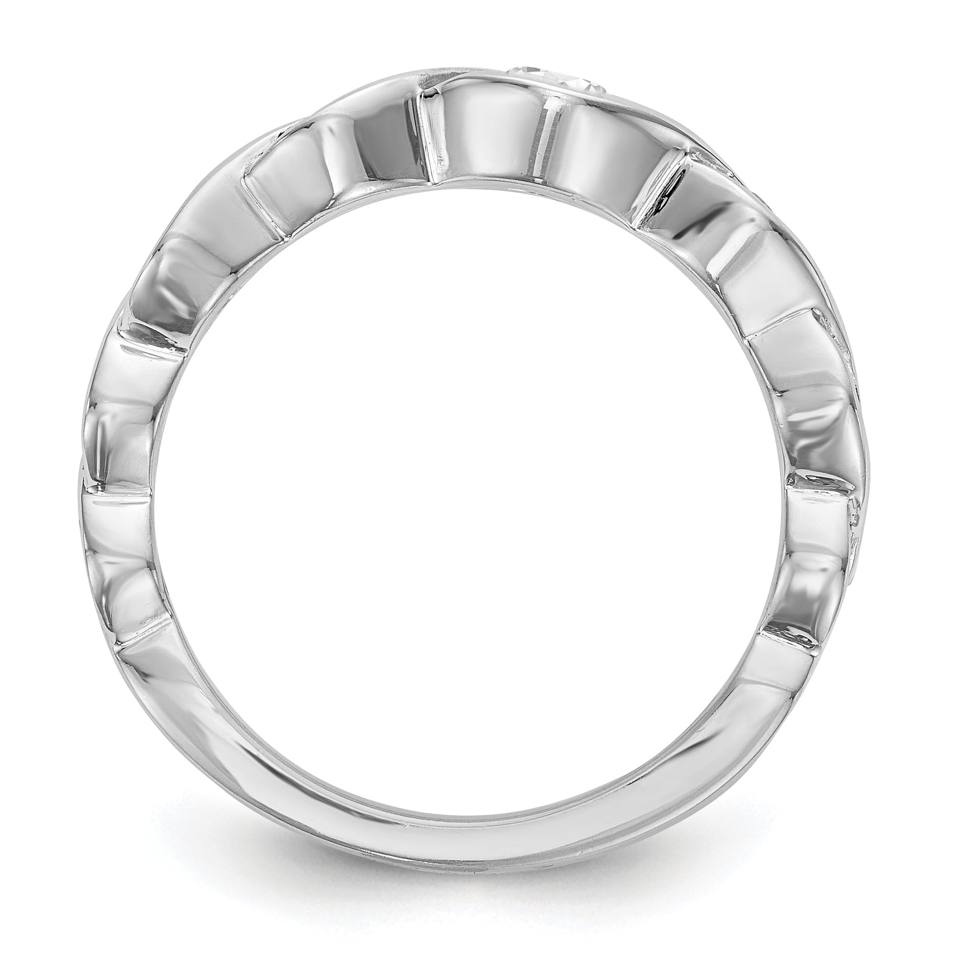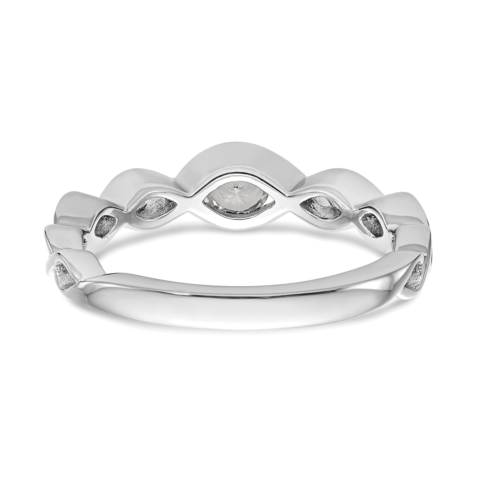 This luxurious ring has a polished finish and is adorned with a total of five stones - one large 0.315 ct cubic zirconia stone and four smaller 0.065 ct stones. The band width is tapered from 5.4 mm to 2.6 mm, and the stone sizes range from 4.4 mm to 2.5 mm. The ring is solid and complete with all stones included, and can be sized from 6 to 8 with a 0.25 increment. It's not recommended for engraving but is indeed a statement piece. Upgrade your jewelry collection with this elegant and eye-catching wedding band ring.