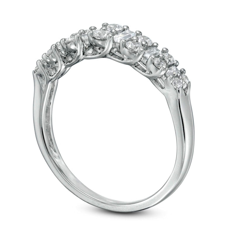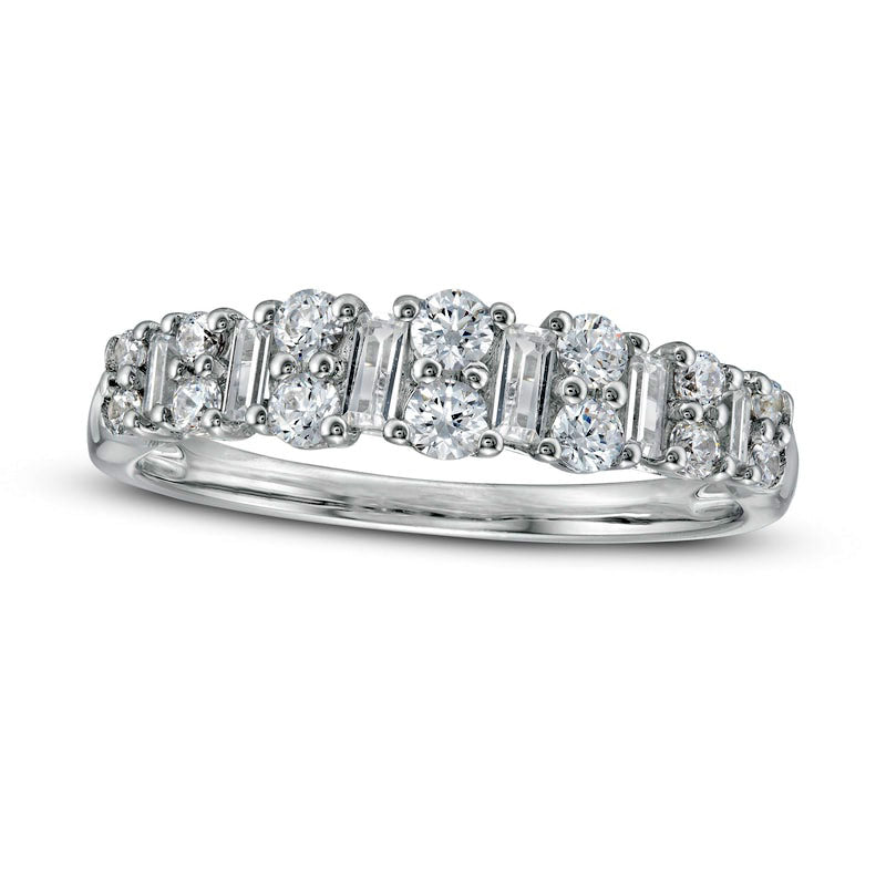 0.63 CT. T.W. Baguette and Round Natural Diamond Band in Solid 14K White Gold