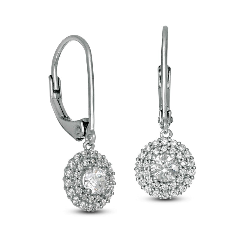0.63 CT. T.W. Certified Diamond Double Frame Drop Earrings in 14K White Gold (I/I1)