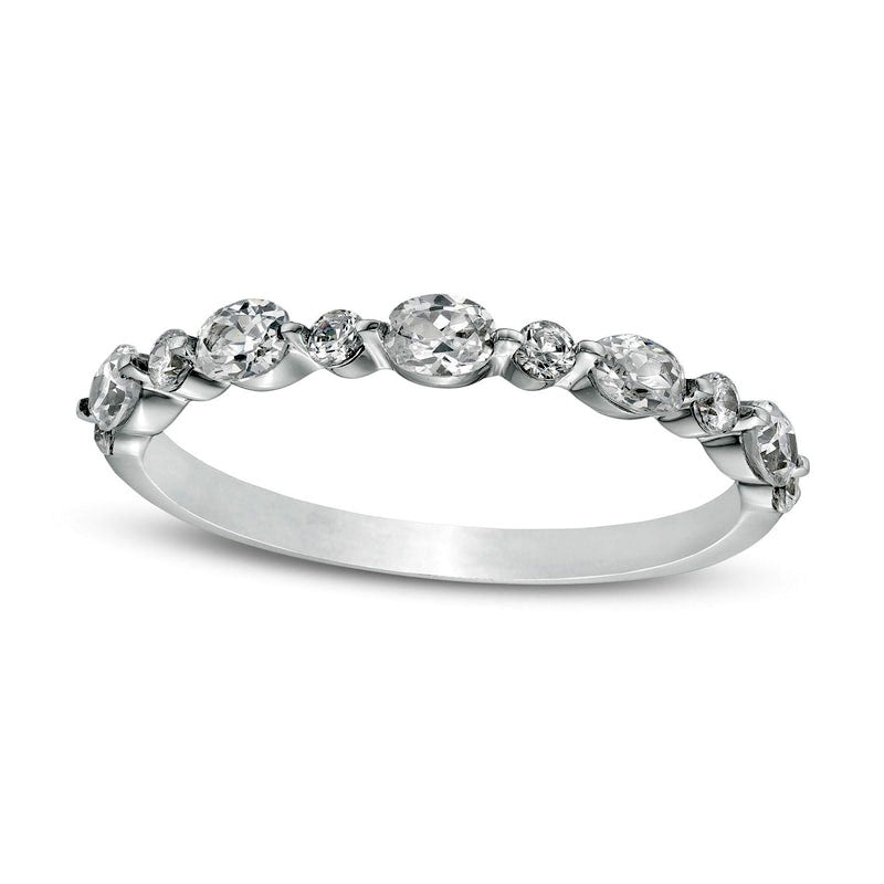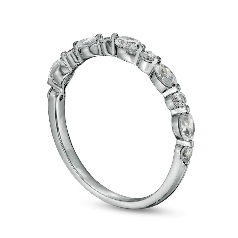 0.63 CT. T.W. Certified Oval Natural Diamond Alternating Anniversary Band in Solid 14K White Gold (I/SI2)