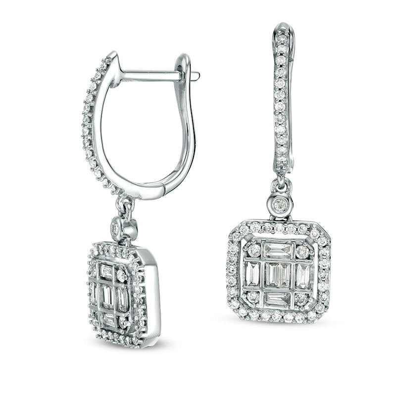 0.63 CT. T.W. Diamond Cushion Frame Drop Earrings in 10K White Gold