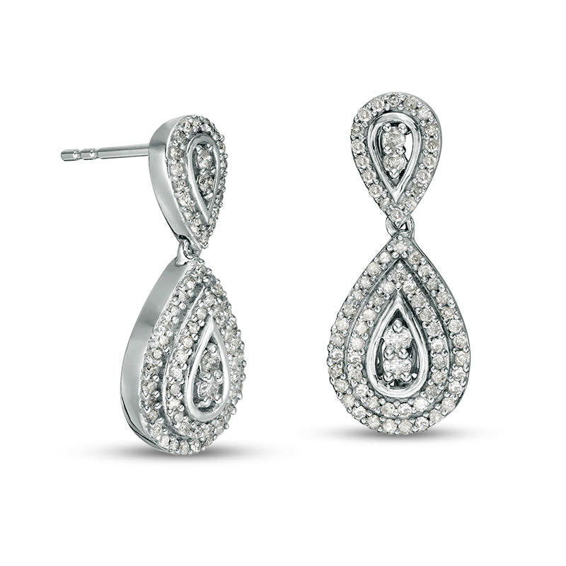 0.63 CT. T.W. Diamond Frame Teardrop Earrings in 10K White Gold