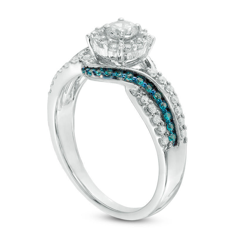 0.63 CT. T.W. Enhanced Blue and White Natural Diamond Frame Bypass Split Shank Engagement Ring in Solid 10K White Gold