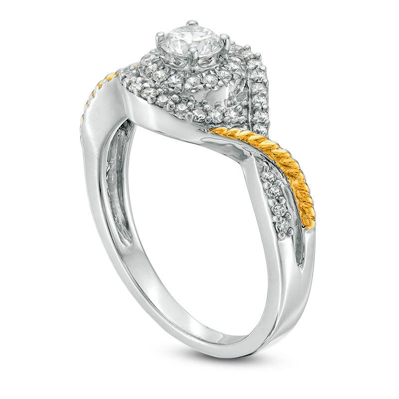0.63 CT. T.W. Natural Diamond Bypass Frame Twist Rope Shank Engagement Ring in Solid 14K Two-Tone Gold