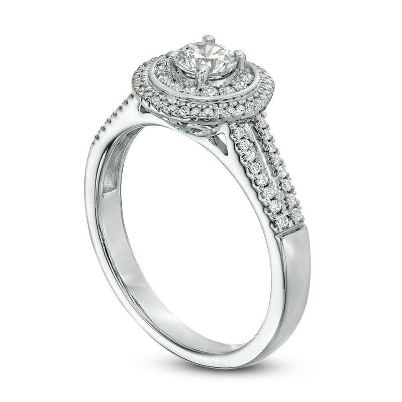 0.63 CT. T.W. Natural Diamond Double Frame Split Shank Engagement Ring in Solid 10K White Gold