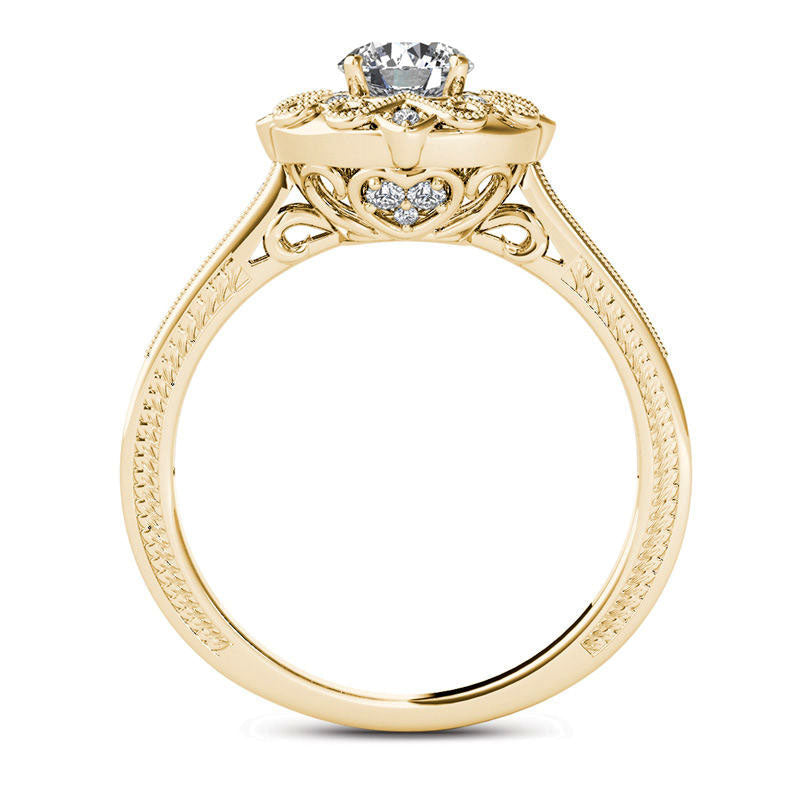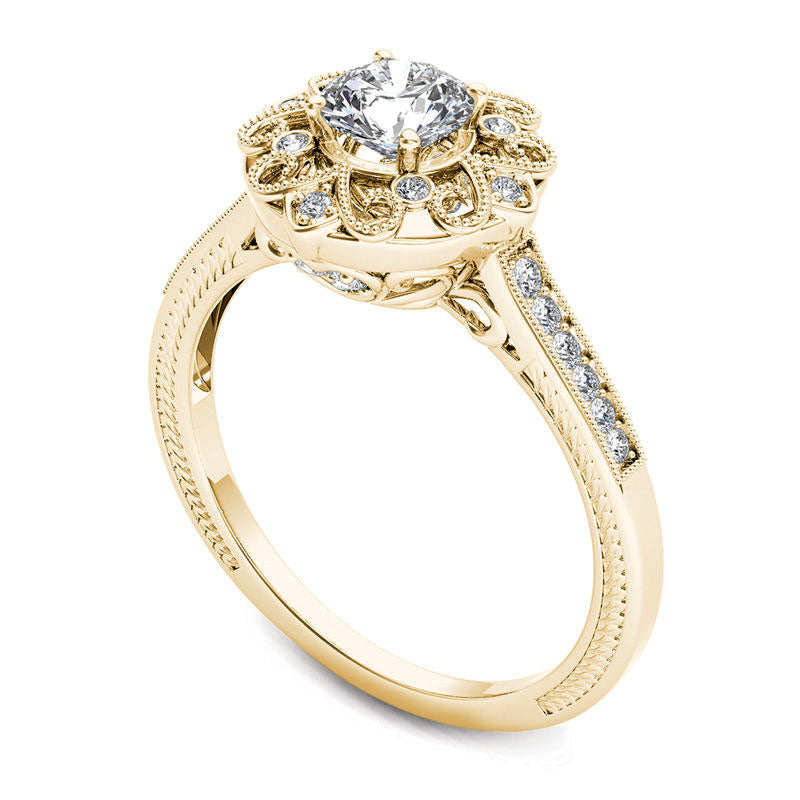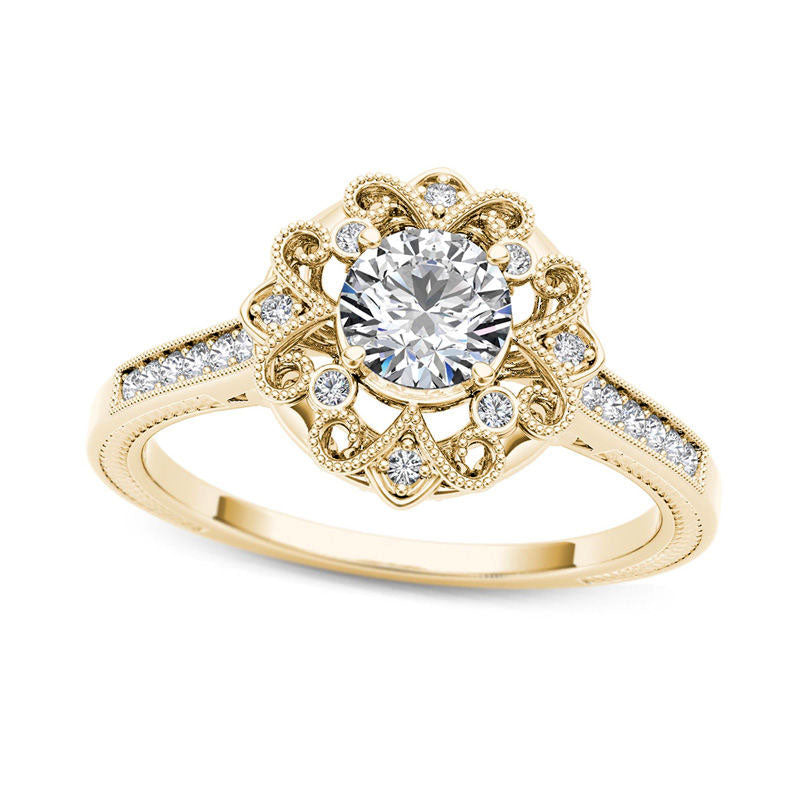 0.63 CT. T.W. Natural Diamond Flower Frame Antique Vintage-Style Engagement Ring in Solid 14K Gold