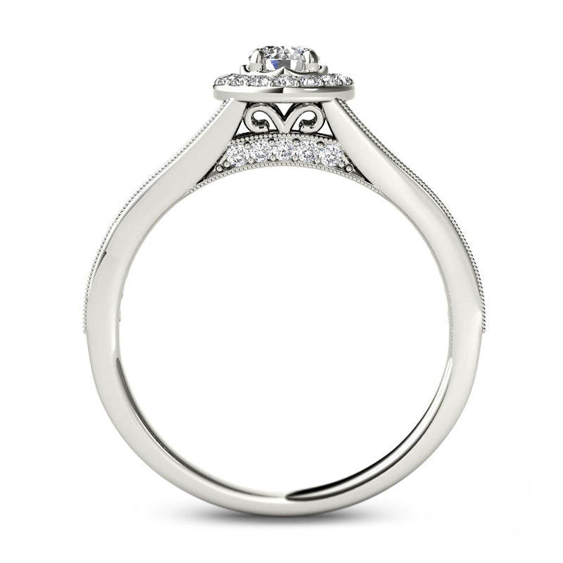This stunning vintage-style diamond engagement ring is sure to captivate her heart. The 14K white gold setting perfectly highlights the 1/3 ct. center diamond, which is embraced by a round...