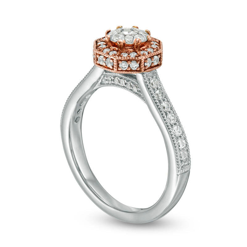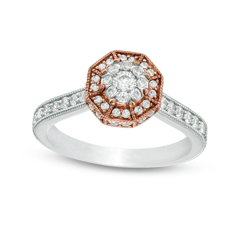 0.63 CT. T.W. Natural Diamond Octagon Frame Antique Vintage-Style Engagement Ring in Solid 10K Two-Tone Gold