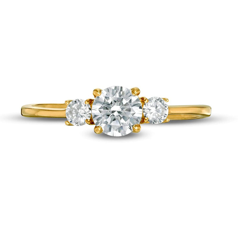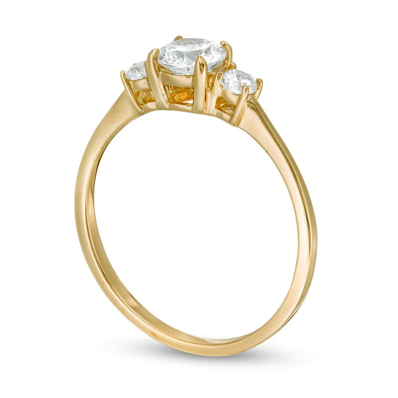 0.63 CT. T.W. Natural Diamond Three Stone Engagement Ring in Solid 14K Gold