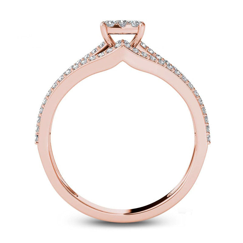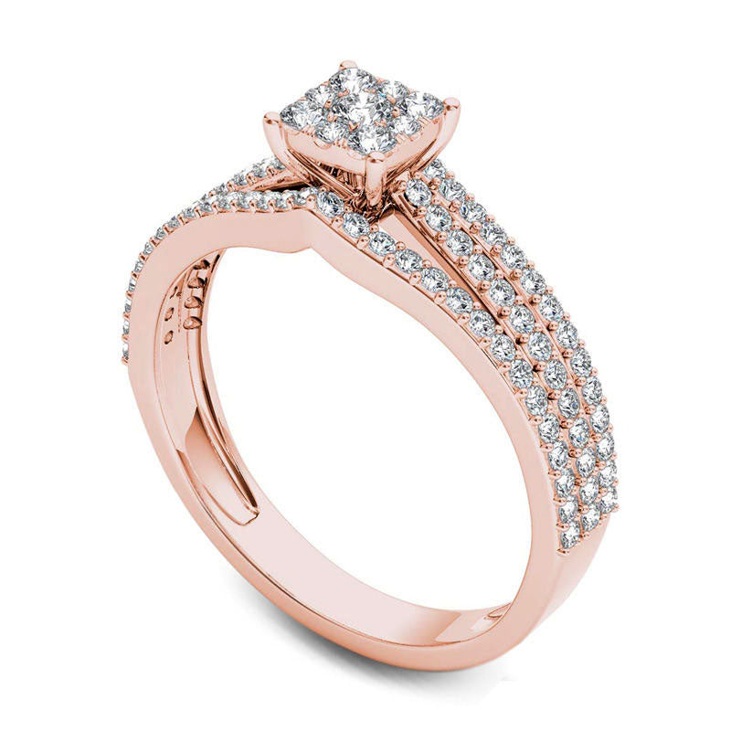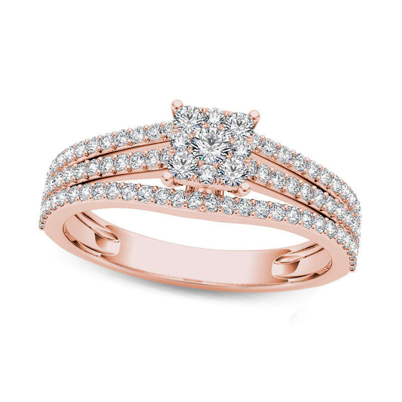 Capture the heart of your beloved with this stunning engagement ring. Expertly crafted from 14K rose gold, this exquisite ring features a square composite of diamonds that sits prominently on a split shank adorned with shimmering diamonds. With a total diamond weight of 5/8 ct. t.w., this engagement ring is a true testament to your love. Glistening with a bright polished sheen, this ring is sure to leave your special someone breathless. Surprise your beloved with a ring that symbolizes your eternal love and commitment.