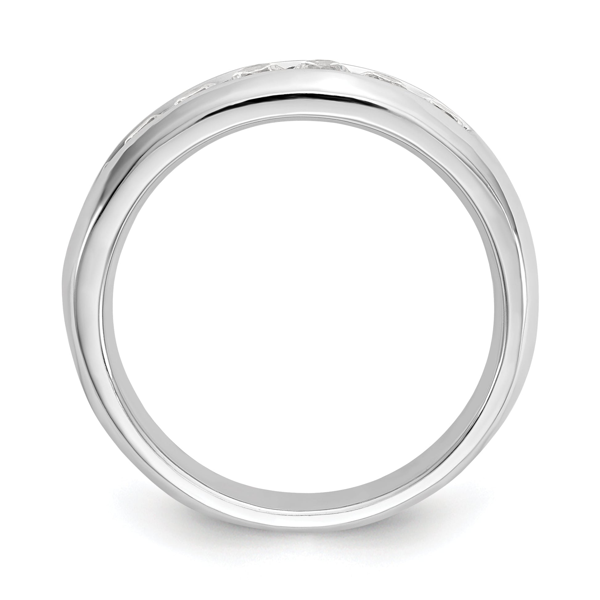 The band measures 4.8mm in width and is available in sizes 6-8 with a sizing adjustment increment of 0.25. The ring is also complete with all stones included and is sizeable for a perfect fit. This beautiful ring is perfect for any occasion and is sure to exceed your expectations.