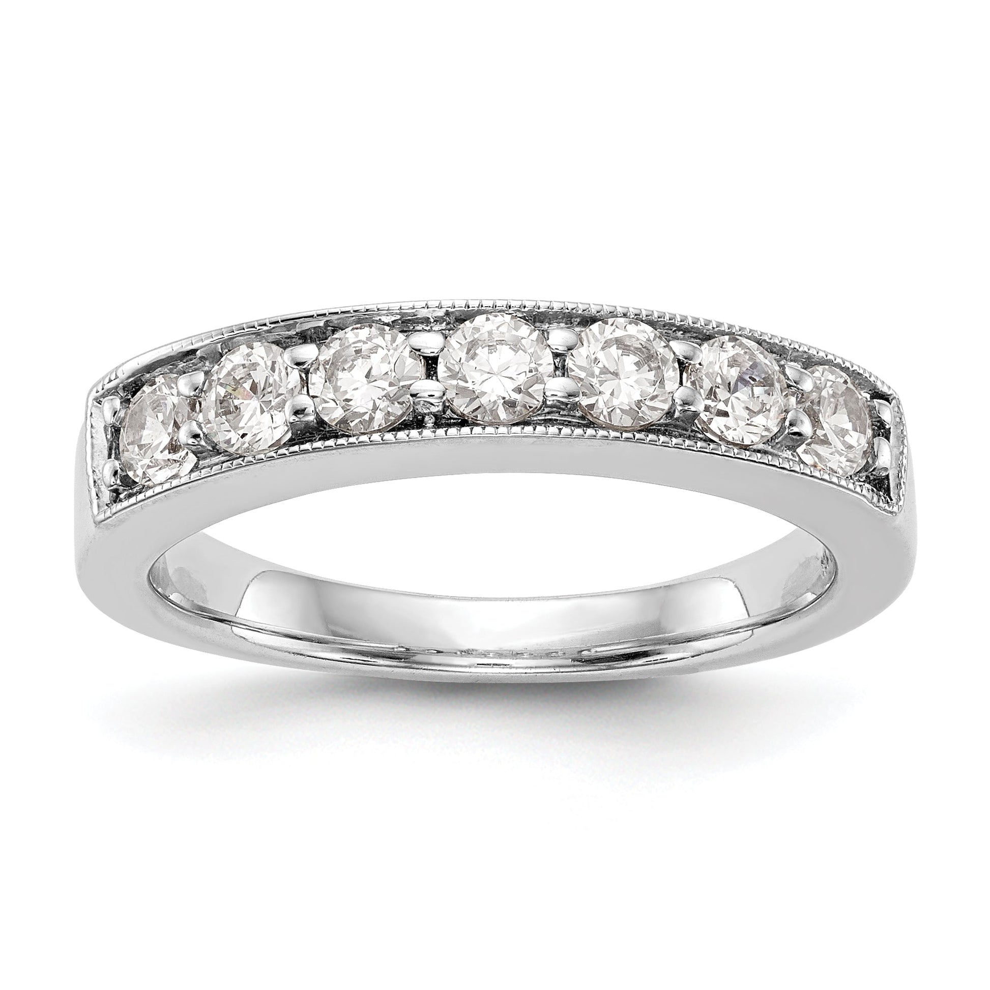 With a tapered band width of 4 to 2.25 mm and 7 stunning round stones weighing a total of 0.1 ct, this ring is both elegant and timeless. Don't hesitate - order this beautiful wedding band today!