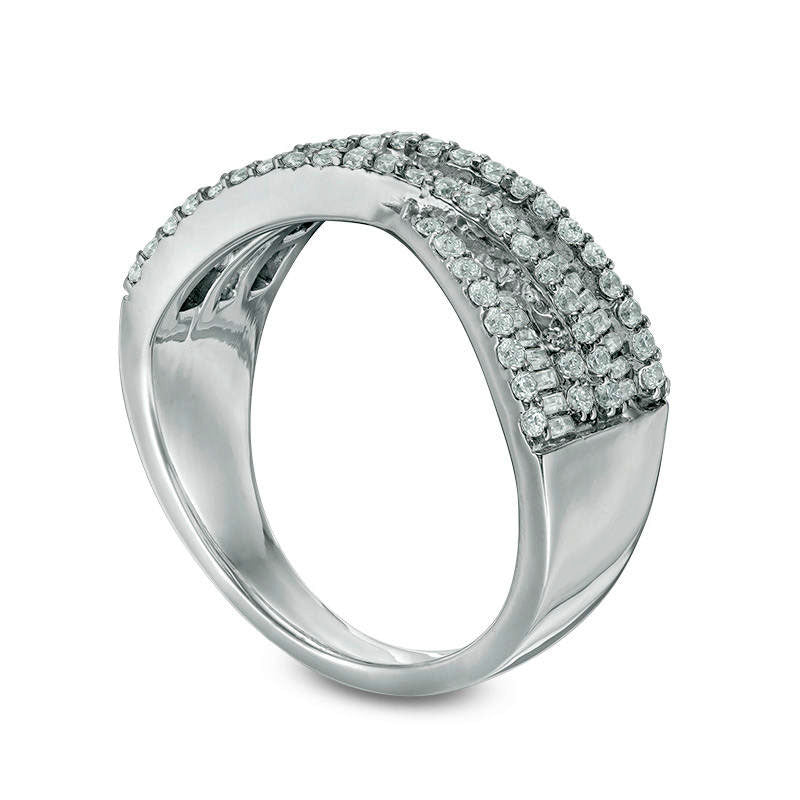 0.75 CT. T.W. Baguette and Round Natural Diamond Crossover Band in Solid 10K White Gold