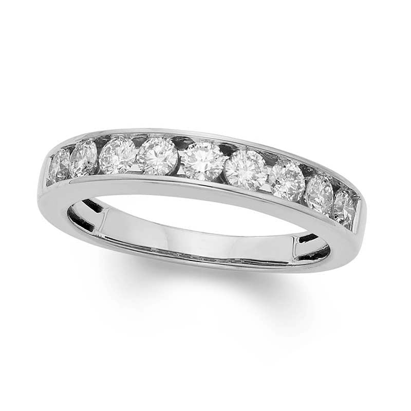 Celebrate your enduring love with this stunning 11-stone anniversary band made of 14K white gold. The 3/4 CT. T.W. diamonds are all certified with a color rank of I and...