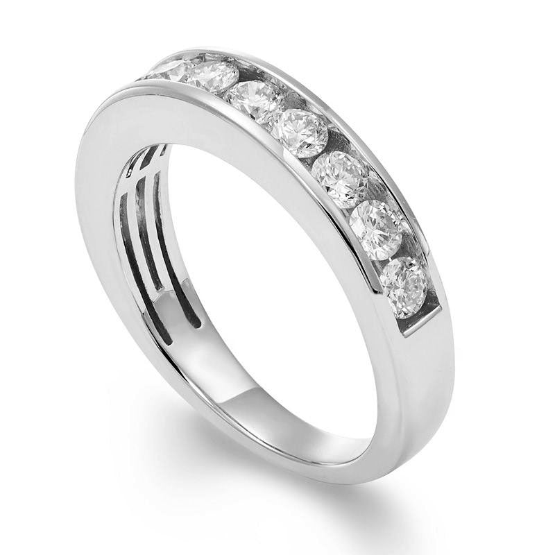 Celebrate your enduring love with this stunning 11-stone anniversary band made of 14K white gold. The 3/4 CT. T.W. diamonds are all certified with a color rank of I and clarity of I1, and have been expertly channel-set into a sleek and timeless design. The ring sparkles beautifully and emits a bright polished shine that is sure to captivate your loved one's heart. Additionally, this anniversary band comes with a certificate that includes a photo and description of the diamonds, ensuring quality and providing peace of mind for insurance purposes. This dazzling diamond eternity band is the perfect way to symbolize your unbreakable bond.