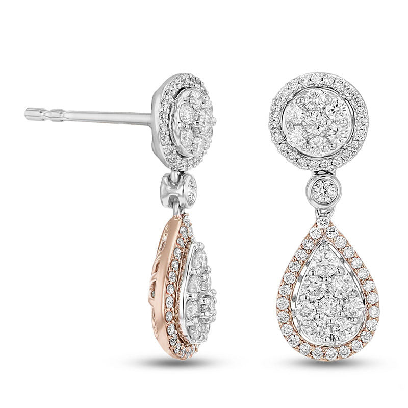 0.75 CT. T.W. Composite Diamond Pear-Shaped Frame Drop Earrings in 14K Two-Tone Gold