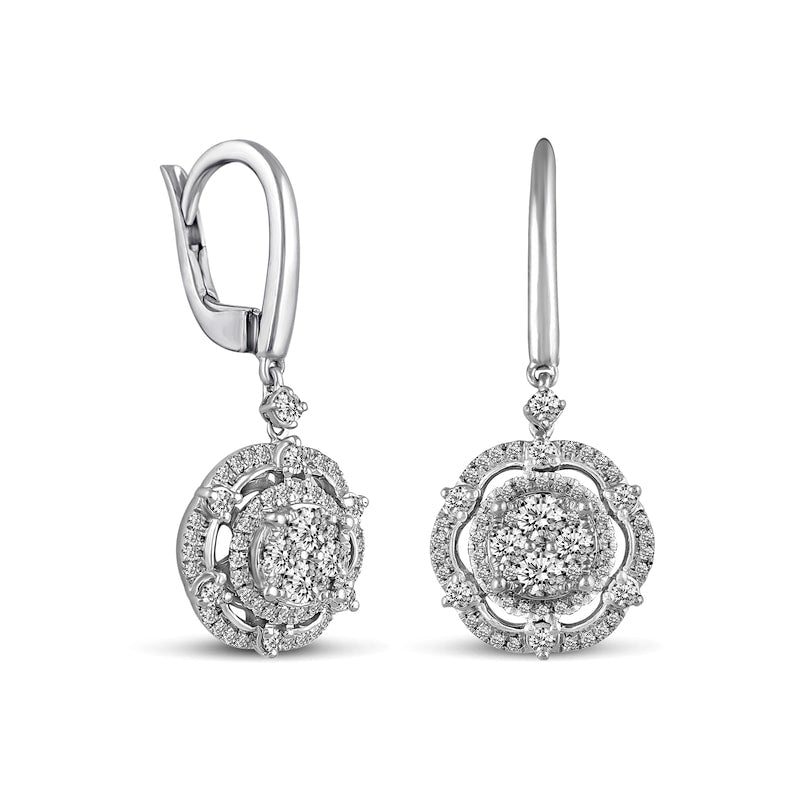 0.75 CT. T.W. Composite Diamond Scallop Frame Drop Earrings in 14K White Gold