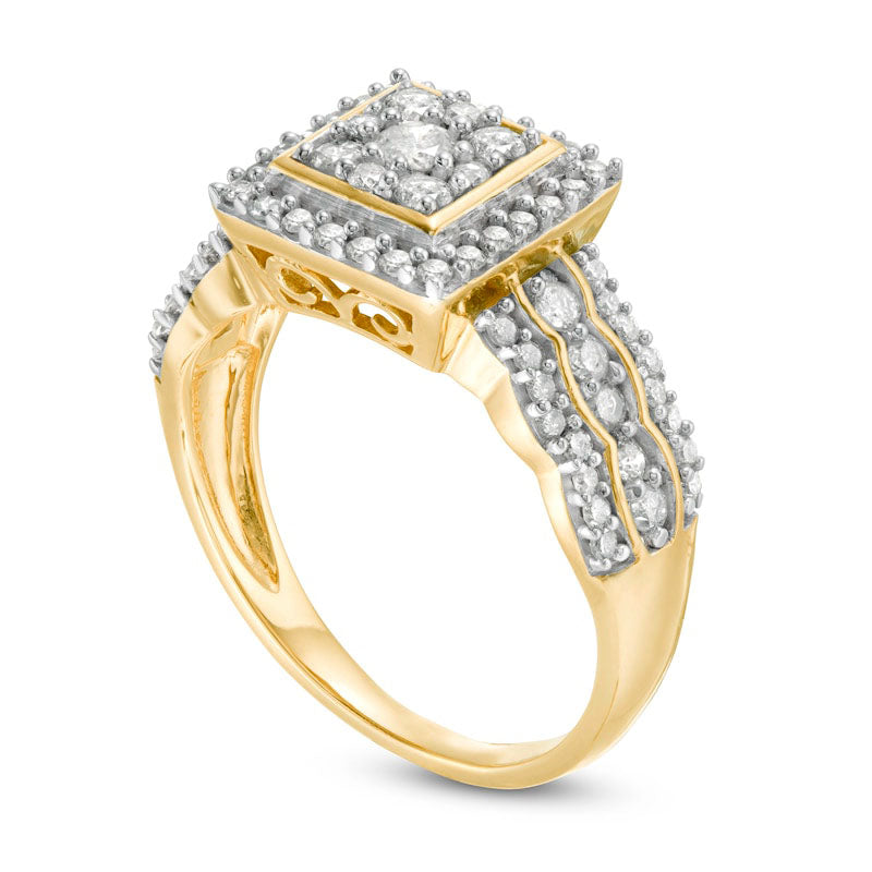 0.75 CT. T.W. Composite Natural Diamond Square Frame Scallop Shank Engagement Ring in Solid 10K Yellow Gold
