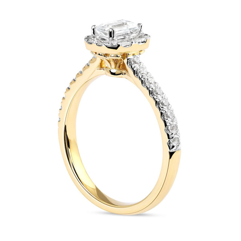 0.75 CT. T.W. Emerald-Cut Natural Diamond Frame Engagement Ring in Solid 10K Yellow Gold (I/I1)