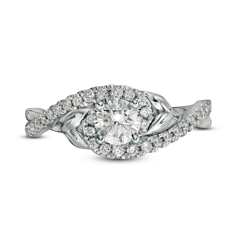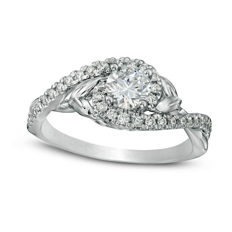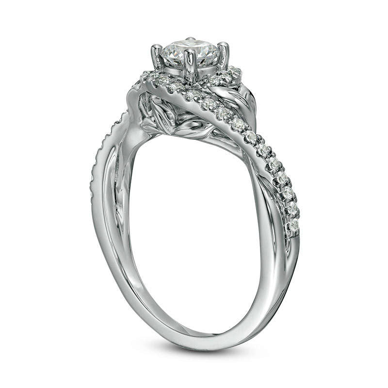 0.75 CT. T.W. Natural Diamond Bypass Leaf-Sides Engagement Ring in Solid 14K White Gold