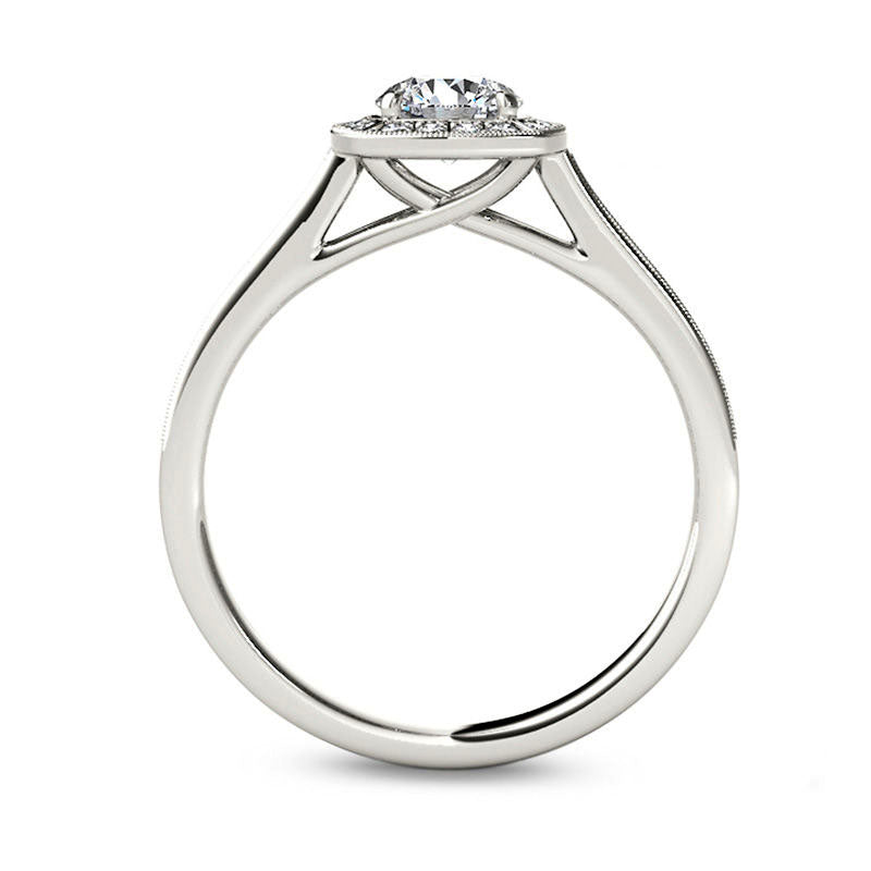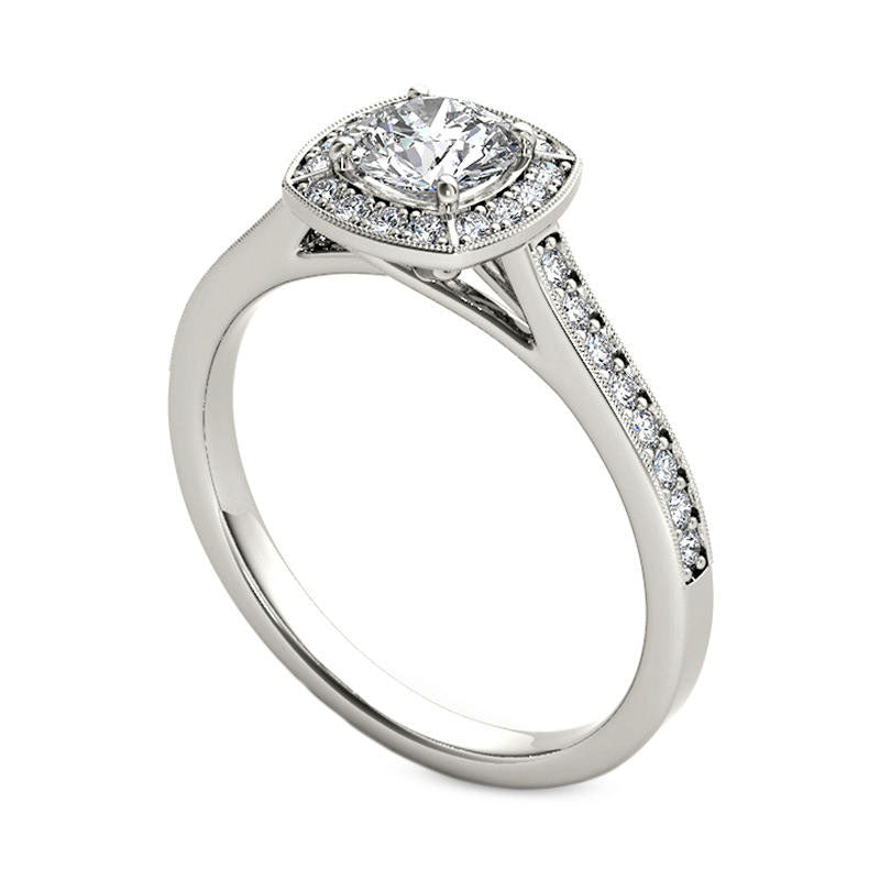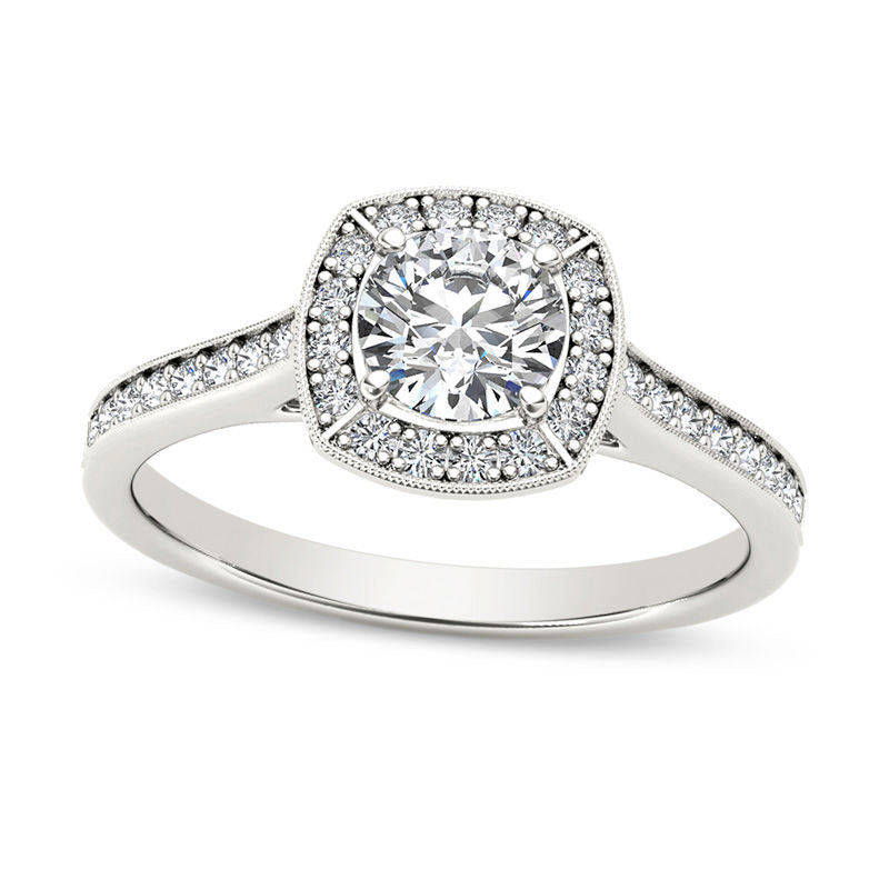 0.75 CT. T.W. Natural Diamond Cushion Frame Antique Vintage-Style Engagement Ring in Solid 10K White Gold