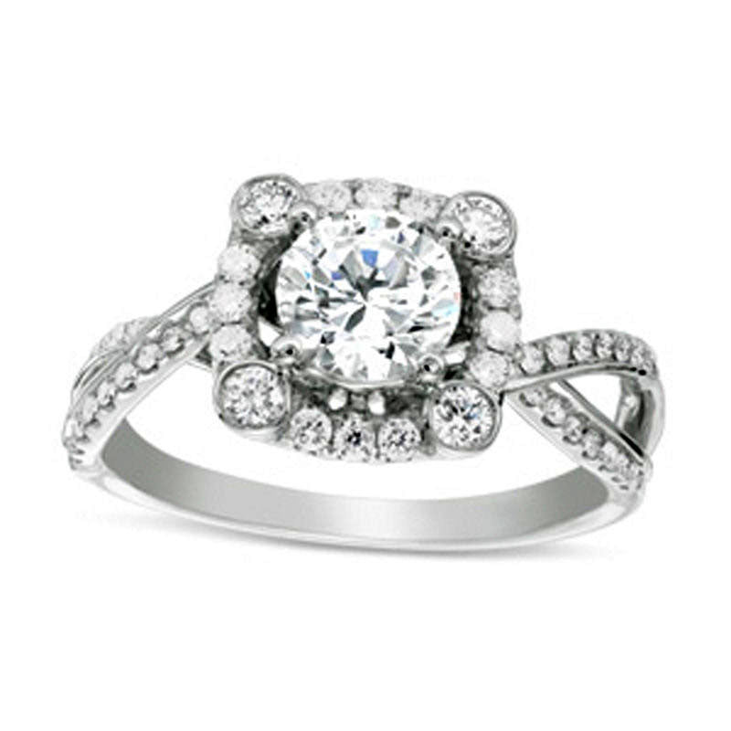 0.75 CT. T.W. Natural Diamond Cushion Frame Twist Shank Engagement Ring in Solid 14K White Gold