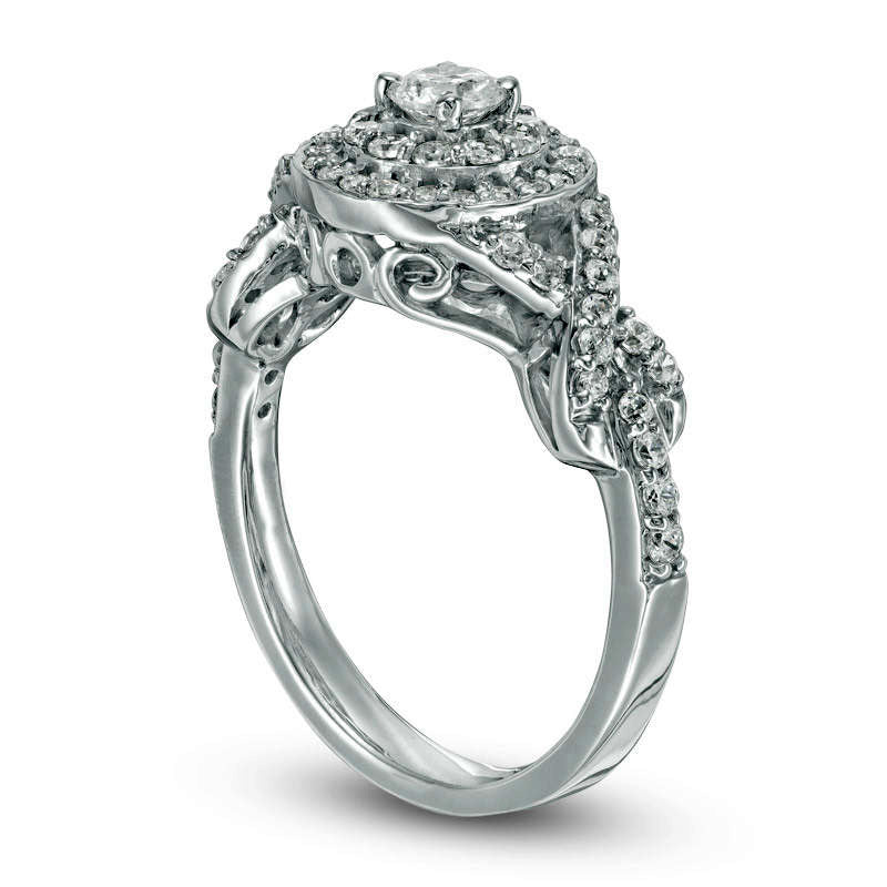 0.75 CT. T.W. Natural Diamond Double Frame Twist Engagement Ring in Solid 10K White Gold