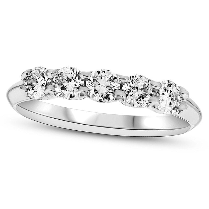 Crafted in elegant 14K white gold, this stunning five stone anniversary band features an impressive 3/4 ct. t.w. of sparkling diamonds. Make a statement of lasting love and commitment with this exquisite jewelry piece.