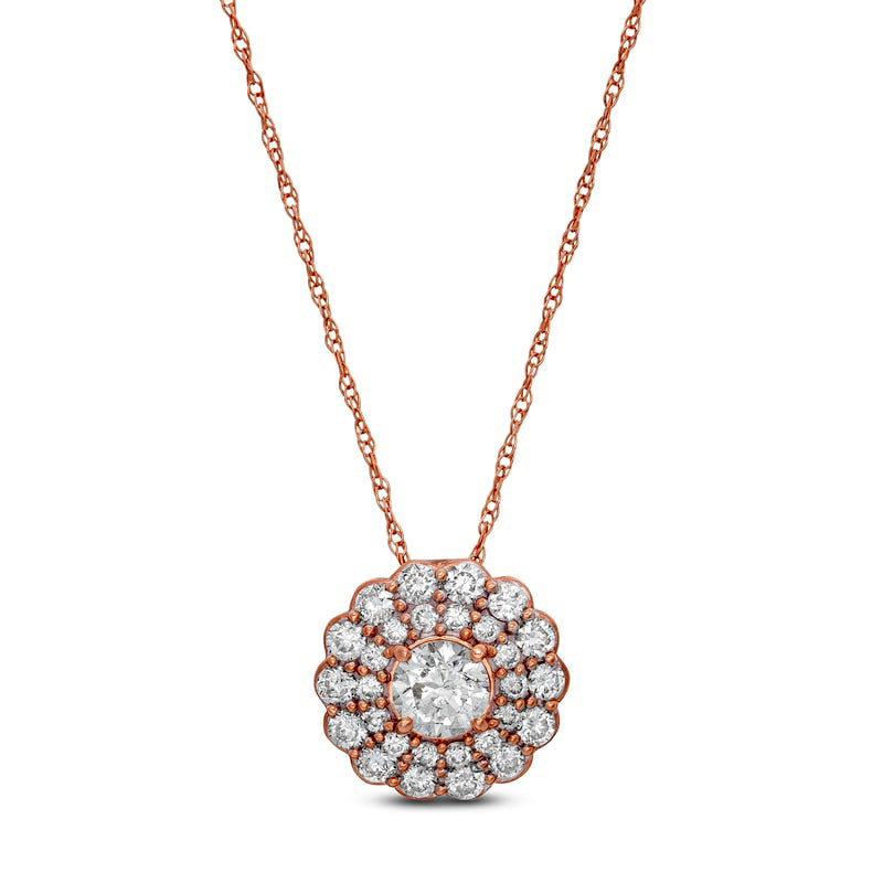 0.75 CT. T.W. Natural Diamond Flower Frame Pendant in 14K Rose Gold