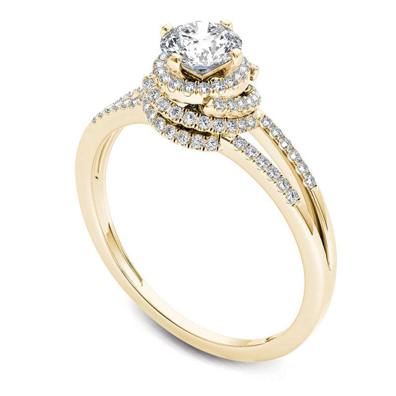 0.75 CT. T.W. Natural Diamond Frame Split Shank Engagement Ring in Solid 14K Gold