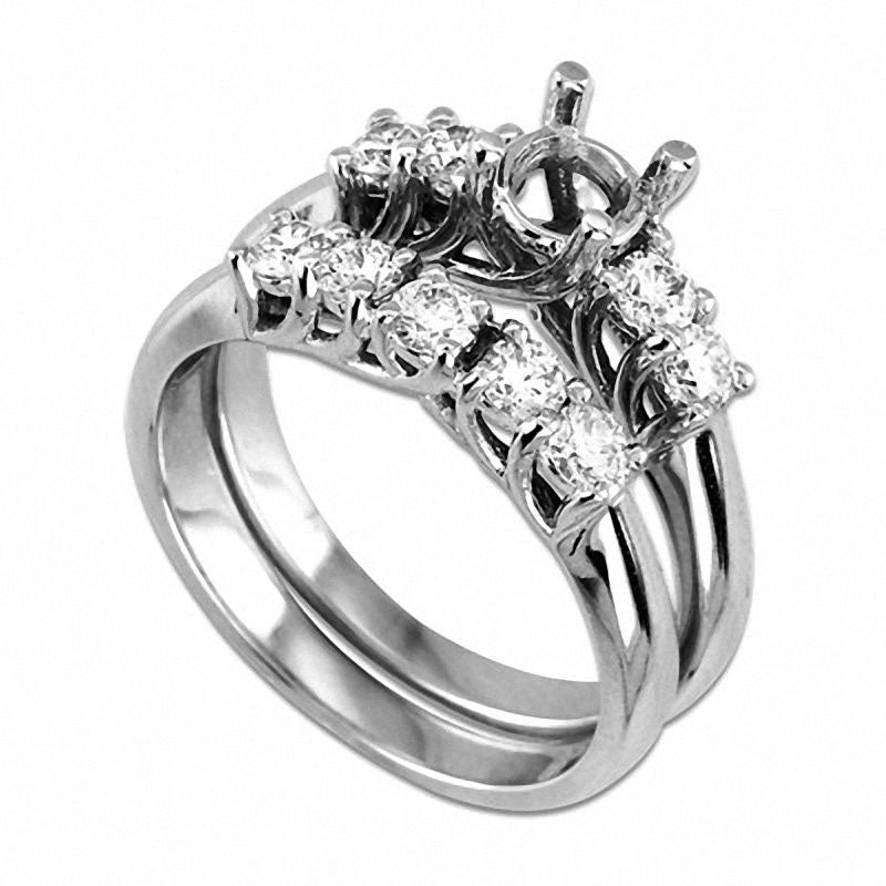 0.75 CT. T.W. Natural Diamond Semi-Mount Bridal Engagement Ring Set in Solid 14K White Gold