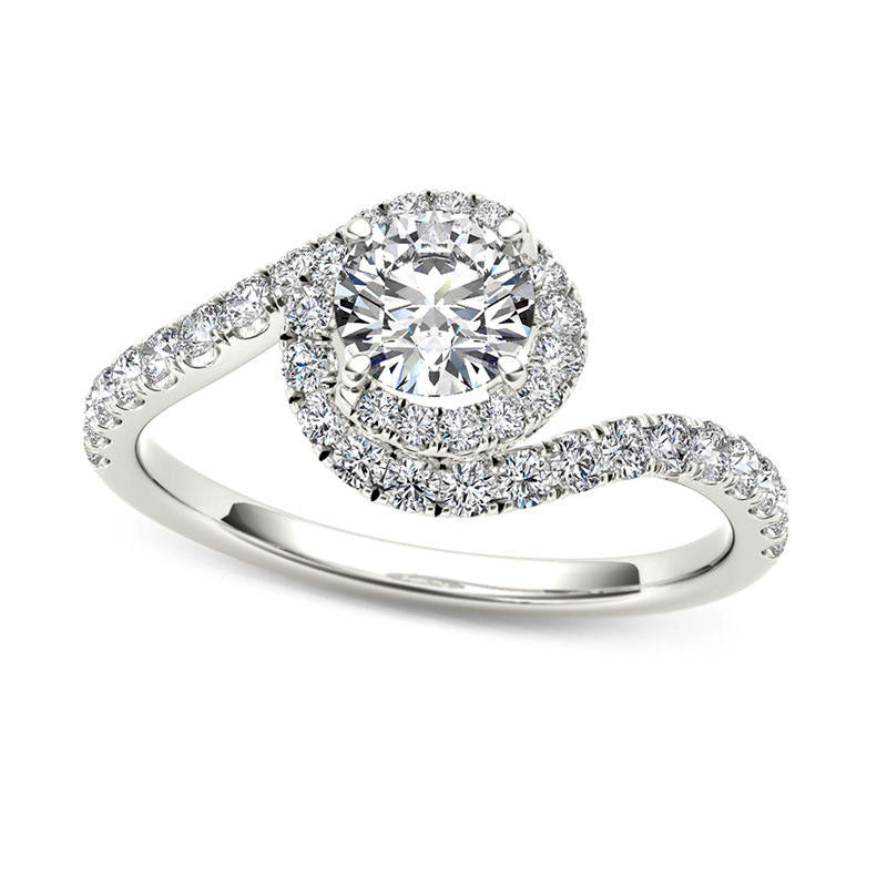 The "3/4 CT. T.W. Diamond Swirl Frame Bypass Engagement Ring" is a captivating piece that will make the moment unforgettable. Crafted in sleek 14K white gold, this ring features a...