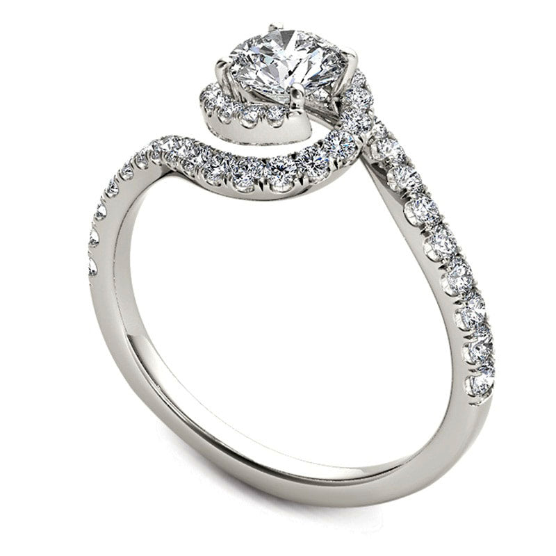 0.75 CT. T.W. Natural Diamond Swirl Frame Bypass Engagement Ring in Solid 14K White Gold