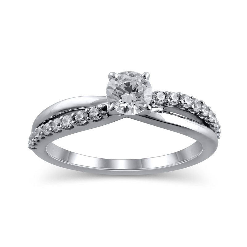 0.75 CT. T.W. Natural Diamond Twist Shank Engagement Ring in Solid 14K White Gold