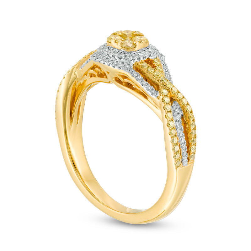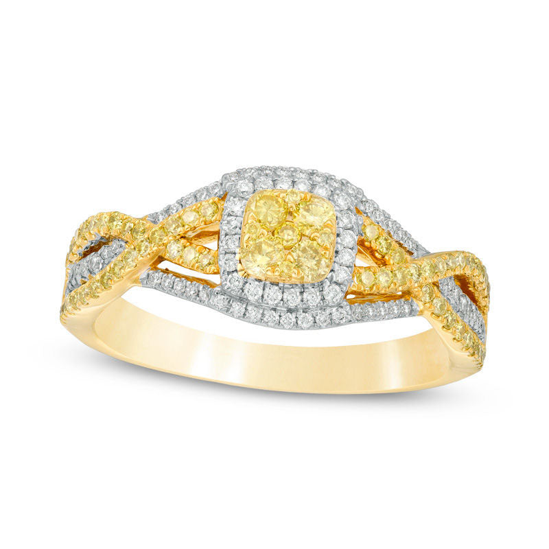 0.75 CT. T.W. Yellow and White Composite Natural Diamond Square Frame Twist Engagement Ring in Solid 14K Gold - Size 7