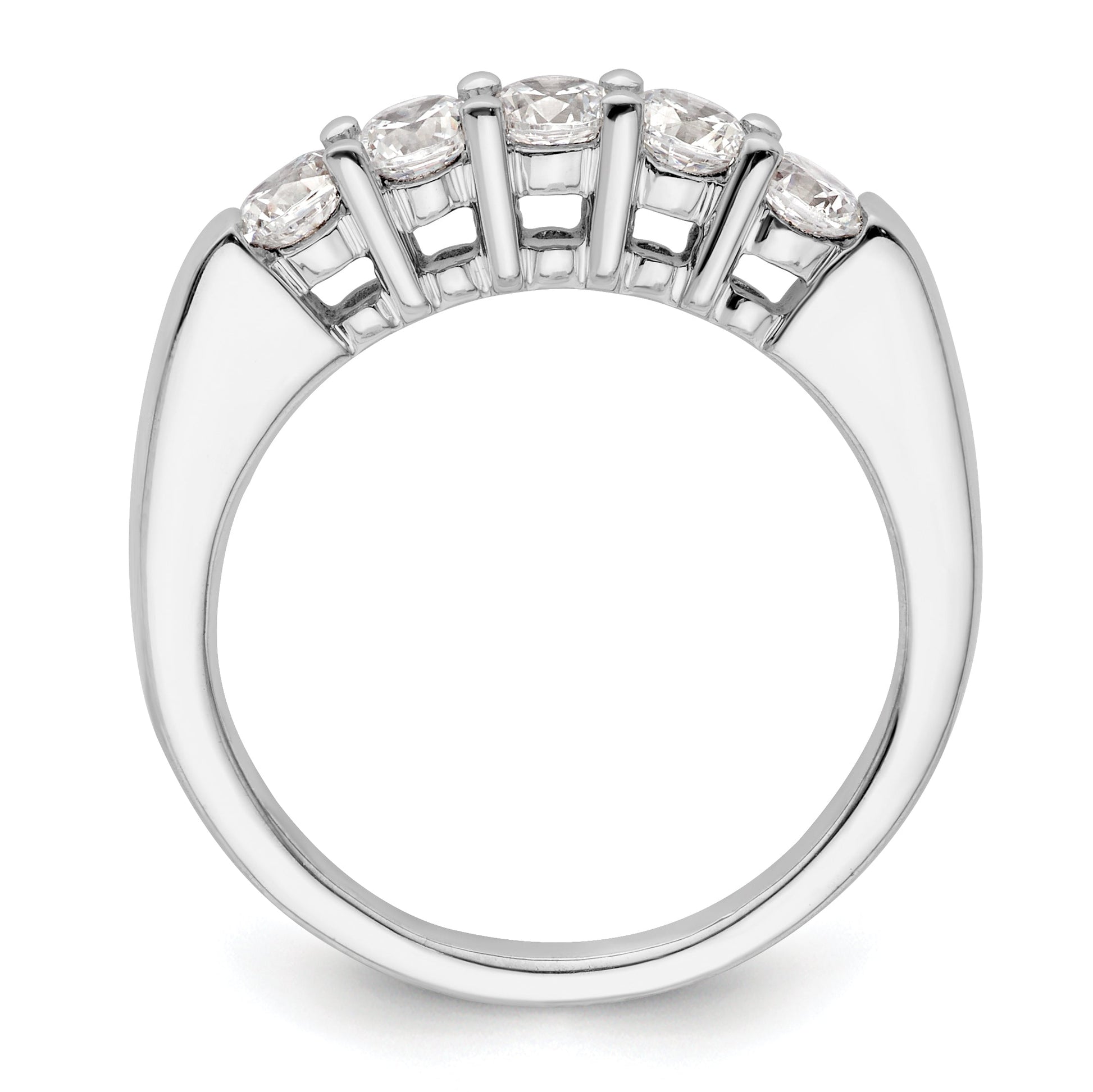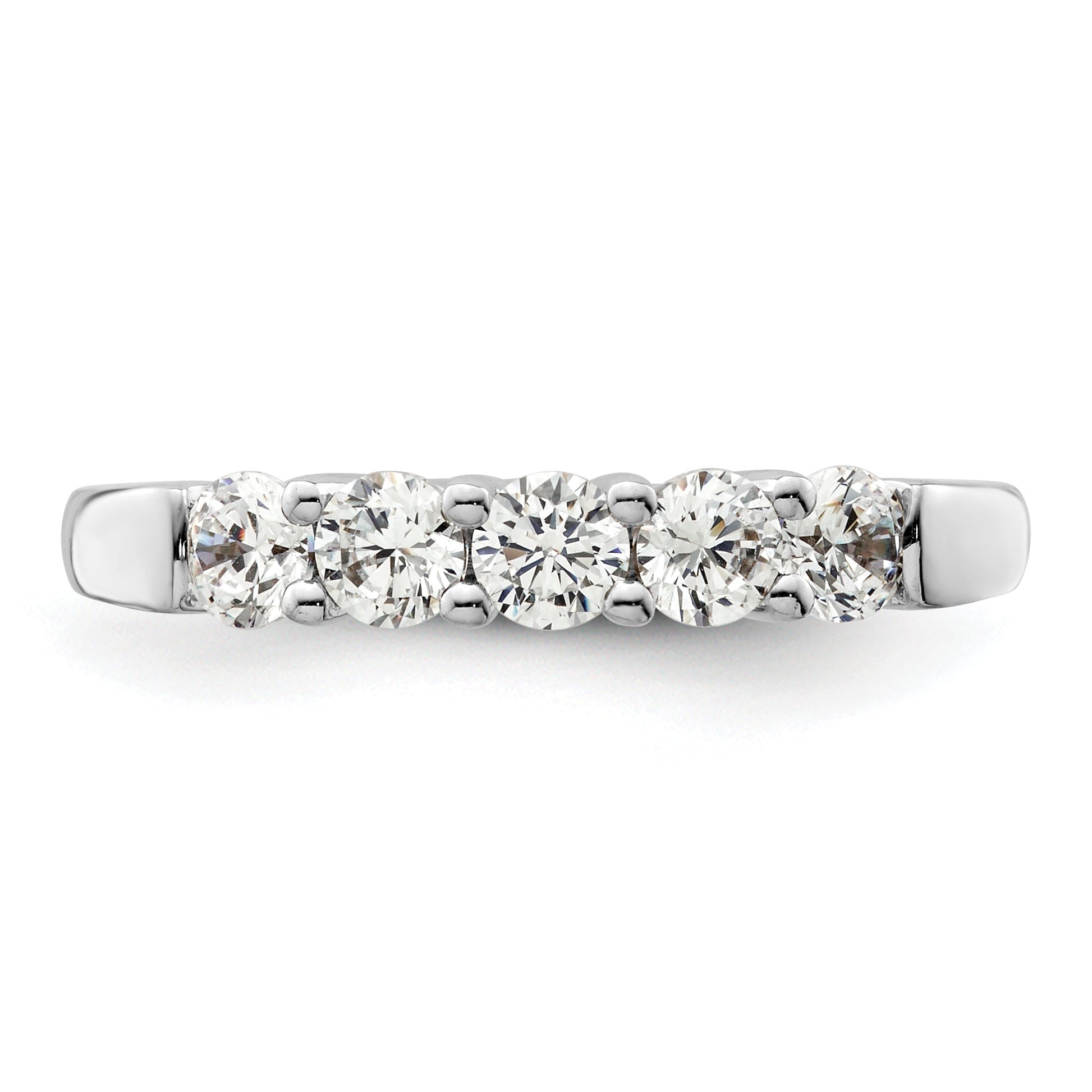 This polished white gold 5-stone wedding band ring is complete with all stones included, and the rhodium plating ensures a lustrous look. The stones are round and measure 3.4mm, with a total weight of 0.306ct. The stone clarity grade is I1 (AA), making them highly sought after. This jewelry is not recommended for engraving and is sold as a single piece. Order yours today and experience the ultimate in luxury and elegance!