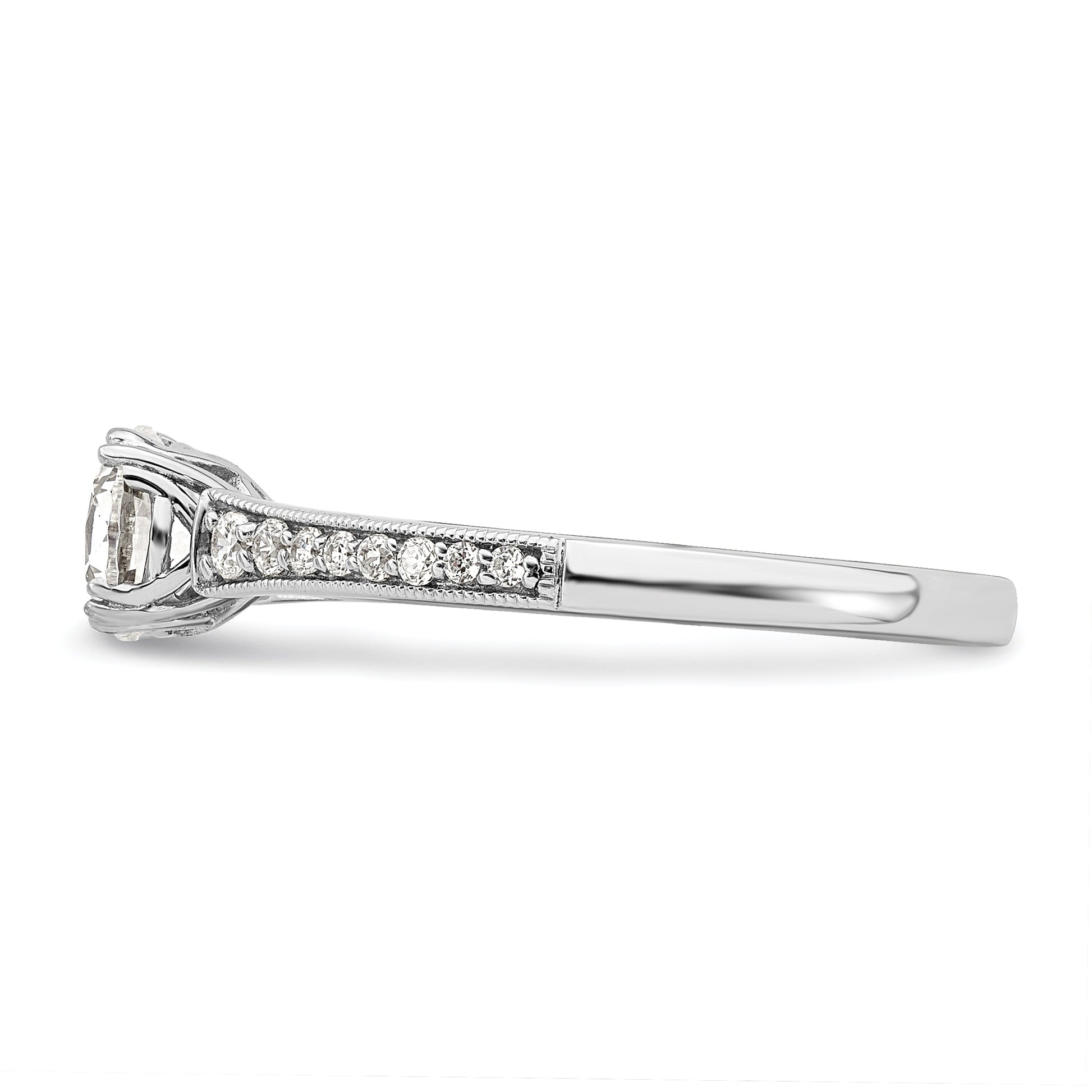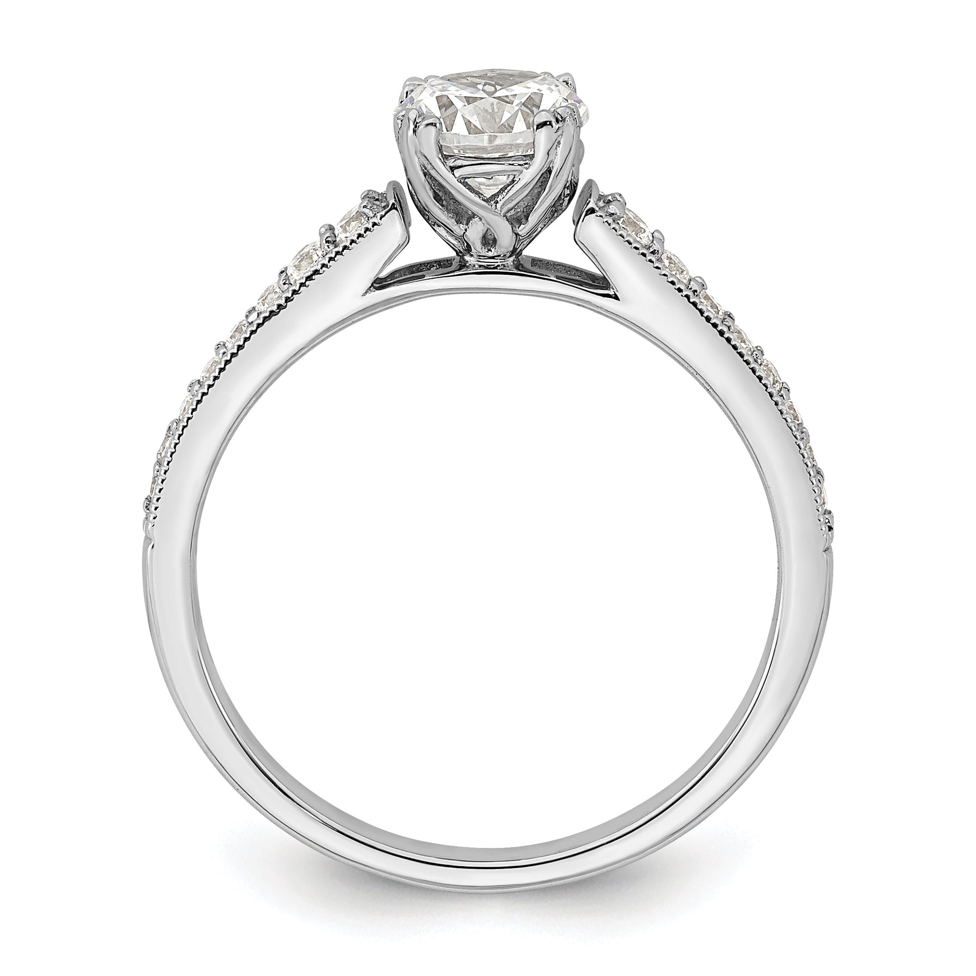 This elegant engagement ring is crafted with a 0.75 carat AAA quality cubic zirconia, hand-set and polished in a solid 14k white gold setting. The 14k gold is stamped for authenticity and is available in white, yellow or rose gold at no additional cost. The ring is perfect for everyday wear as it will not oxidize or discolor. If you prefer natural diamonds, we can mount them for you at an additional cost. The 14k gold ring makes for a great gift for all special occasions such as birthdays, graduations, weddings, Mother's Day, Valentine's Day or as a promise ring. You can also opt for a vacation-safe ring or an everyday ring. Your purchase is accompanied with a 30-day, hassle-free, money-back guarantee and will arrive with a complimentary gift box. The ring has a tapered band width of 1.9 to 3.1mm and is available in a semi-mount (center stones not included). The ring is sizeable and features a round head type with 8 prongs. The ring top measures 9.5mm in length and 8mm in width. With 16 prong-set, high-quality cubic zirconia stones surrounding the center stone, the ring is the perfect alternative to natural earth-mined diamonds.