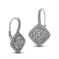 0.88 CT. T.W. Composite Diamond Tilted Cushion Frame Vintage-Style Drop Earrings in Sterling Silver