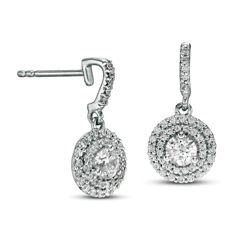 0.88 CT. T.W. Diamond Double Frame Drop Earrings in 14K White Gold
