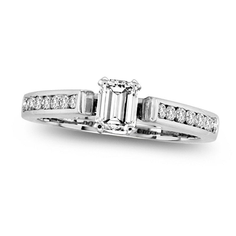 0.88 CT. T.W. Emerald-Cut Natural Diamond Engagement Ring in Solid 14K White Gold