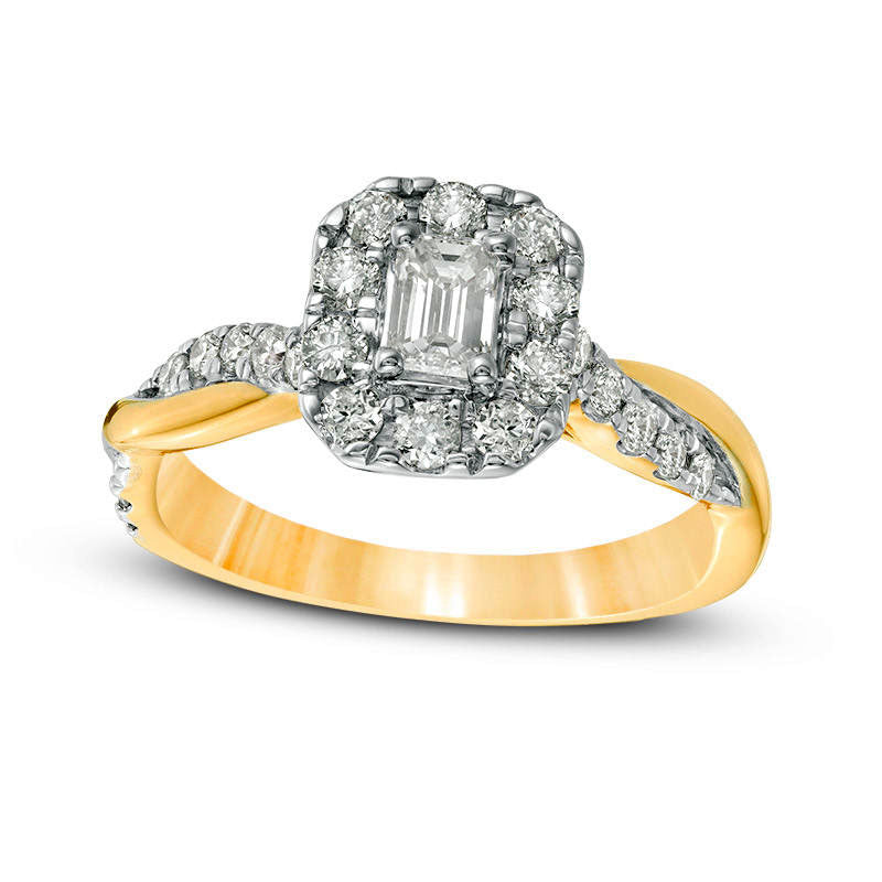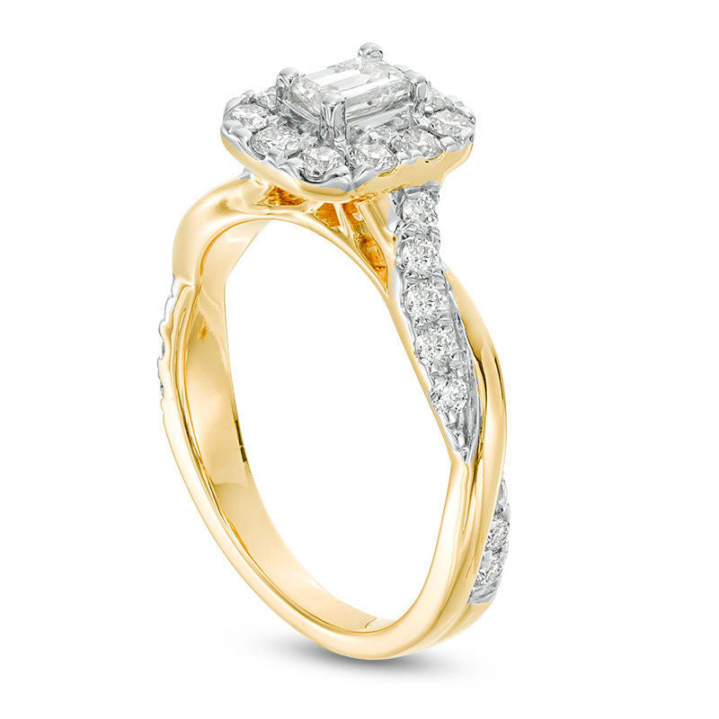 0.88 CT. T.W. Emerald-Cut Natural Diamond Frame Twist Shank Engagement Ring in Solid 10K Yellow Gold