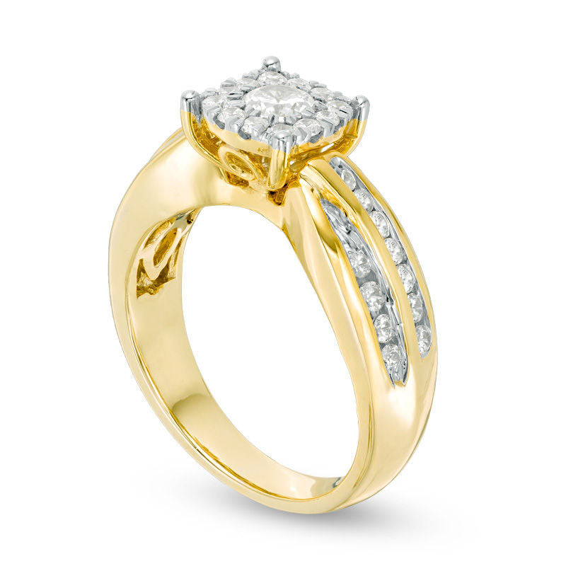 Presenting this exquisite 7/8 CT. T.W. Diamond Frame Engagement Ring in 10K Gold will set the perfect stage for your forever commitment. Specially crafted in stunning 10K gold, this beautiful ring boasts a central 1/5 ct. diamond wrapped in a plush diamond frame. Its shank features a graceful two-row pinched design adorned with shimmering diamonds. This alluring engagement ring is sure to capture your heart with 7/8 ct. t.w. of dazzling diamonds and a brilliant polished luster that dazzles everyone around. Show your love with this enchanting engagement ring that symbolizes your forever bond.