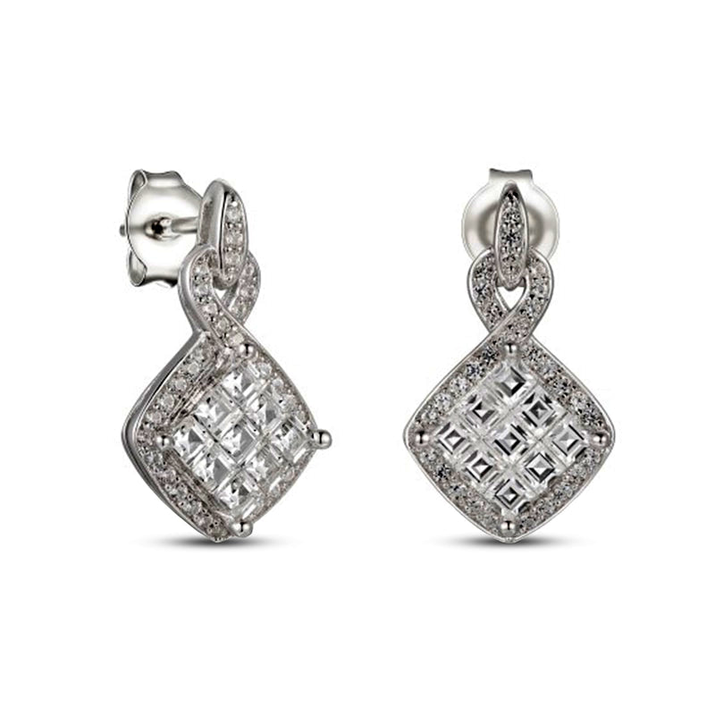 0.88 CT. T.W. Princess-Cut Composite Diamond Frame Drop Earrings in 10K White Gold