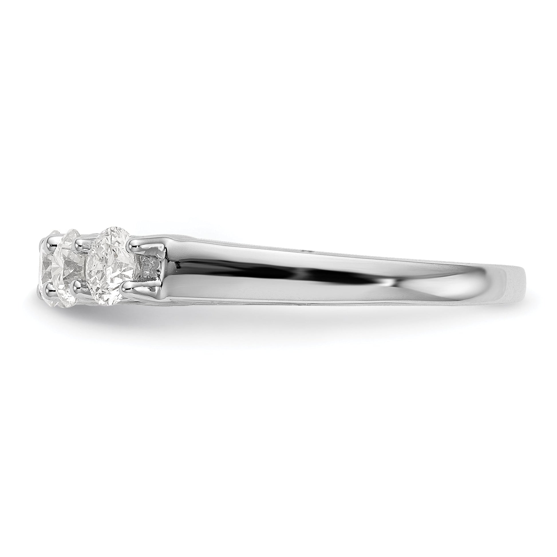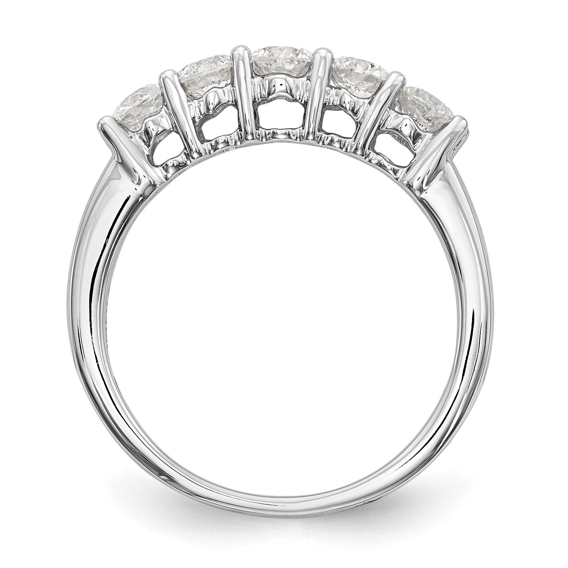 This stunning ring is complete with a polished finish, rhodium plating, and a tapered band width of 2.04 to 2.52 mm. The five round 3.5mm CZ stones have a total weight of 0.17 ct, and the ring features a closed back and a head height of 3.48 mm. Produced using a casted manufacturing process, this mounting-only ring is sizeable and can be customized to fit your finger perfectly. The edge is rounded for extra comfort, and the solid construction ensures a lifetime of wear. Don't settle for anything less than the best – choose this 0.88ct CZ Solid Real 14K White Gold 5-Stone Wedding Band Ring today!
