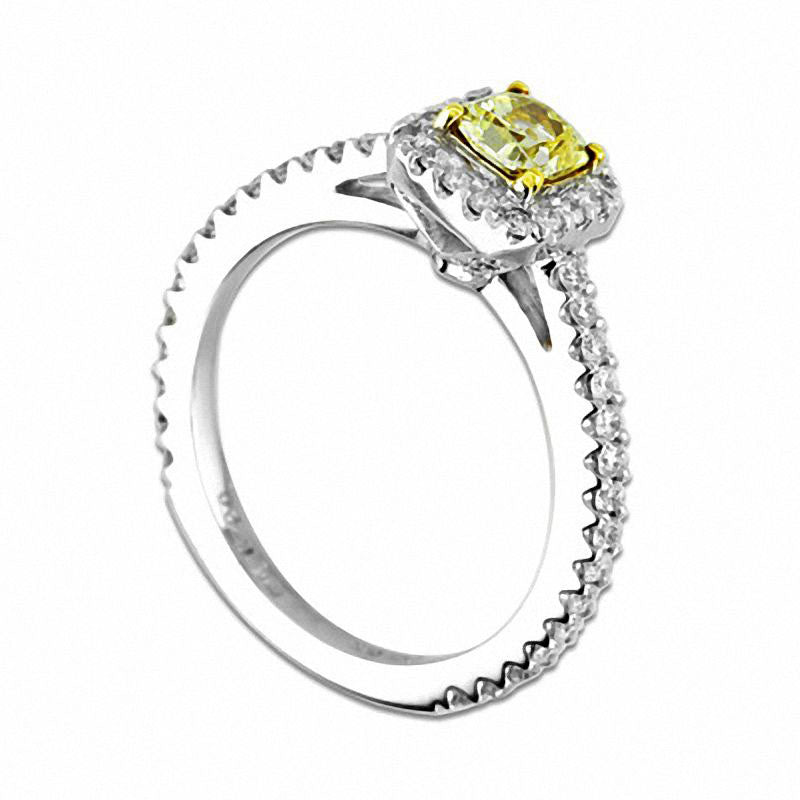 1.0 CT. T.W. Radiant-Cut Yellow and White Natural Diamond Frame Engagement Ring in Solid 14K White Gold (SI2)