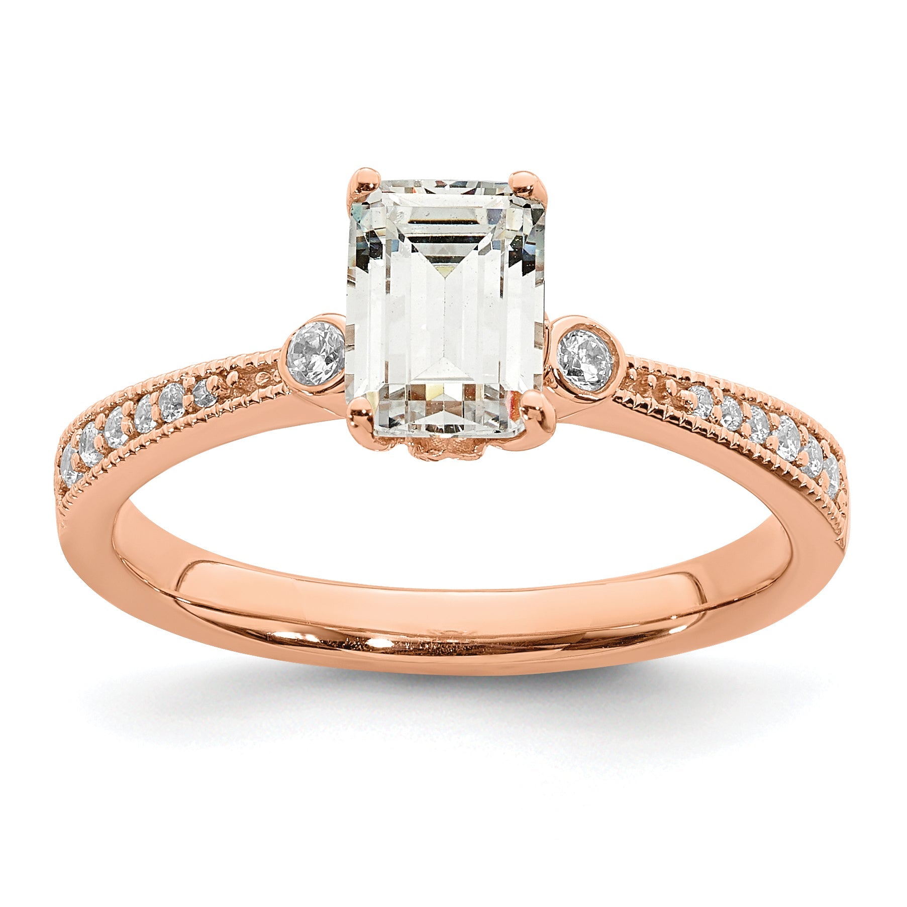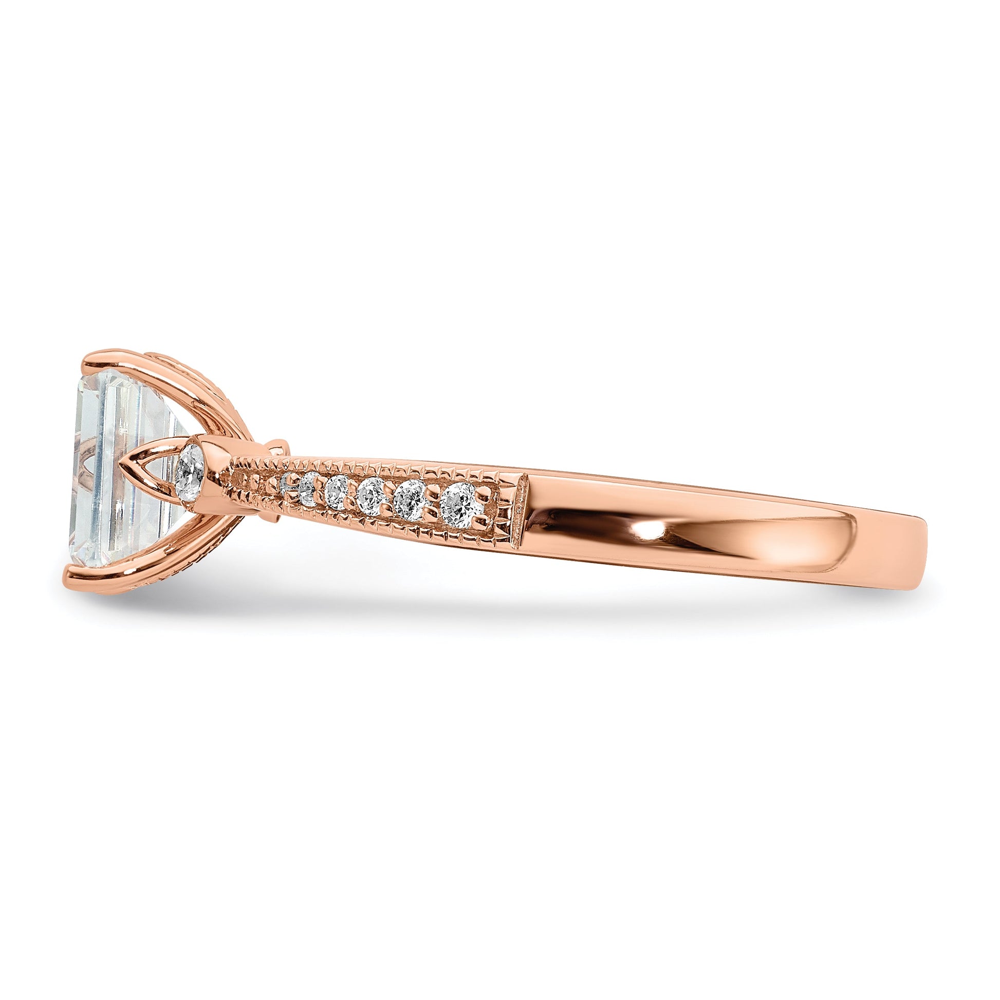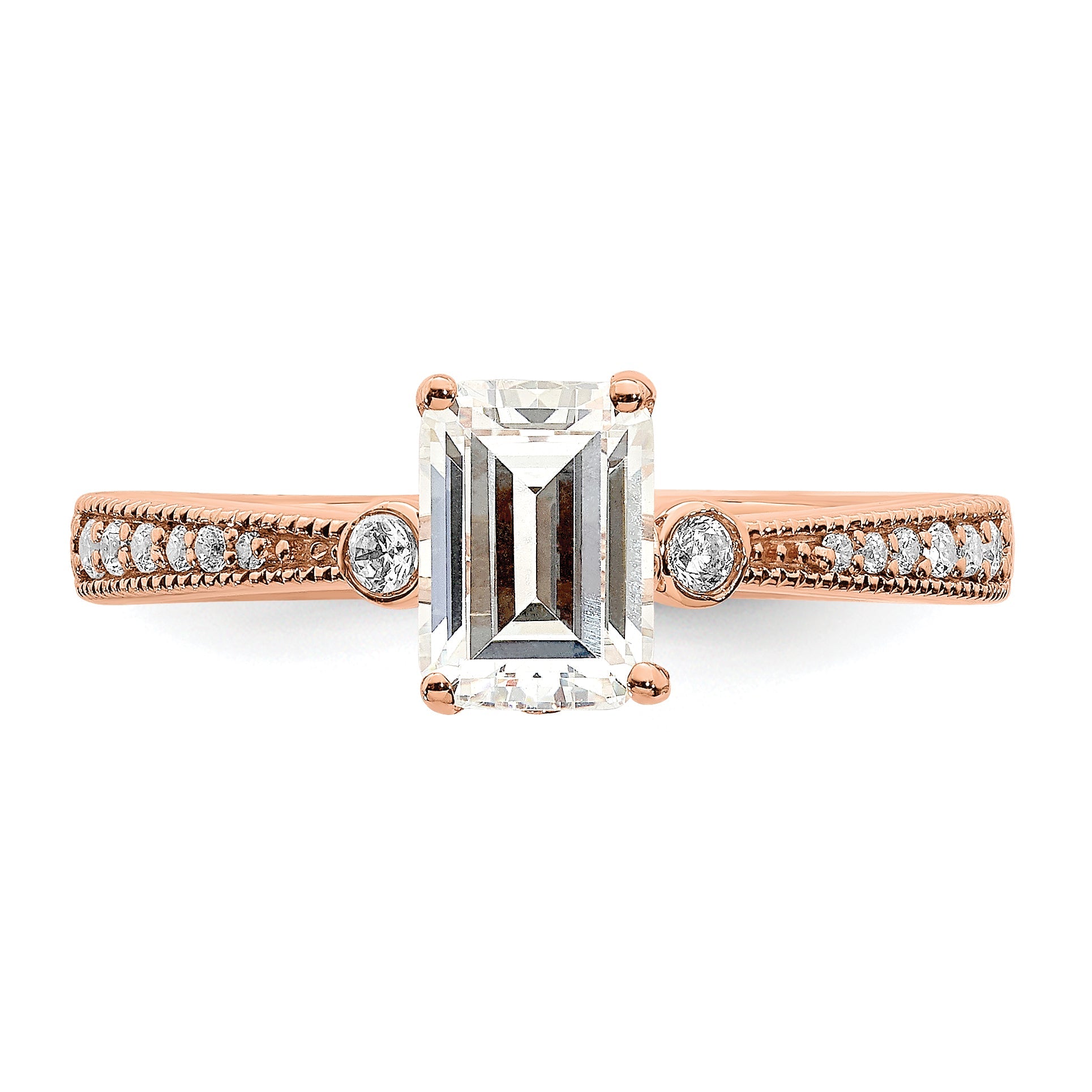 Experience luxury and beauty with the 1.00ct. CZ Solid Real 14k Rose Polish 1ct Emerald Engagement Dia Ring, perfect for any special occasion.