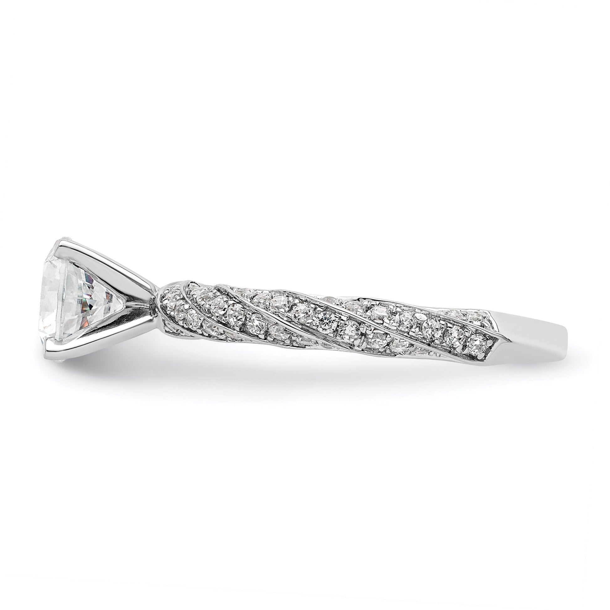 The '1.00ct. CZ Solid Real 14k White Twisted Round Engagement Ring' is a beautiful and affordable option for those looking for an engagement ring. It is made of real 14k white gold and features a top-quality cubic zirconia. The ring is stamped with 14k to ensure authenticity and comes with a 30-day money-back guarantee. The ring can be upgraded with natural diamonds, and it is suitable for any occasion. The ring is also available in yellow or rose gold for the same price. The band is tapered and features a twisted round design. It is perfect for anyone looking for a simple yet elegant engagement ring.
